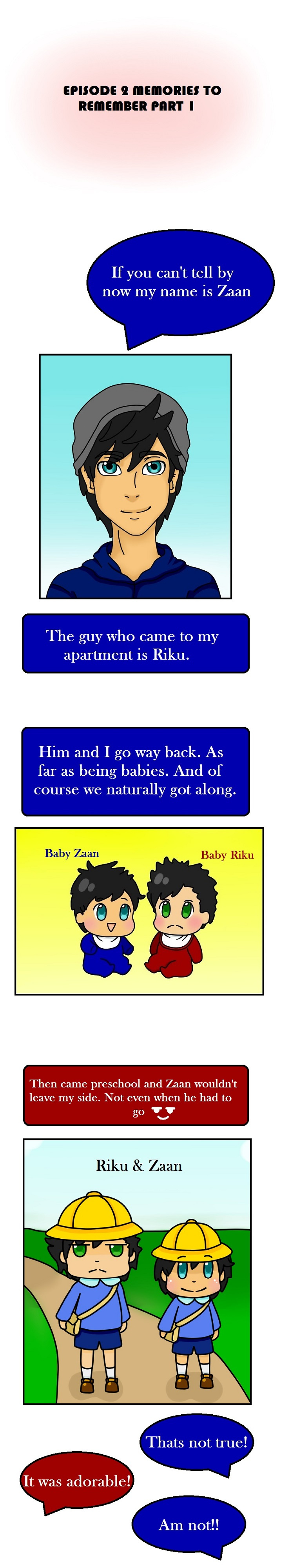 Can't tell but Zaan and Riku are off to the café and it gives a little back story of them as they grow up.