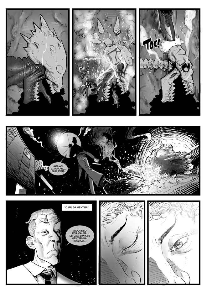 E se uma única mentira fosse capaz de te colocar no meio de uma guerra antiga entre céu e inferno, em uma perseguição implacável onde sua alma e carne são os alvos de seres das sombras? Esse é o enredo principal de “Caçadores de Mentiras” minha nova HQ de fantasia e suspense, com arte minha e roteiro de Roberto Silver.