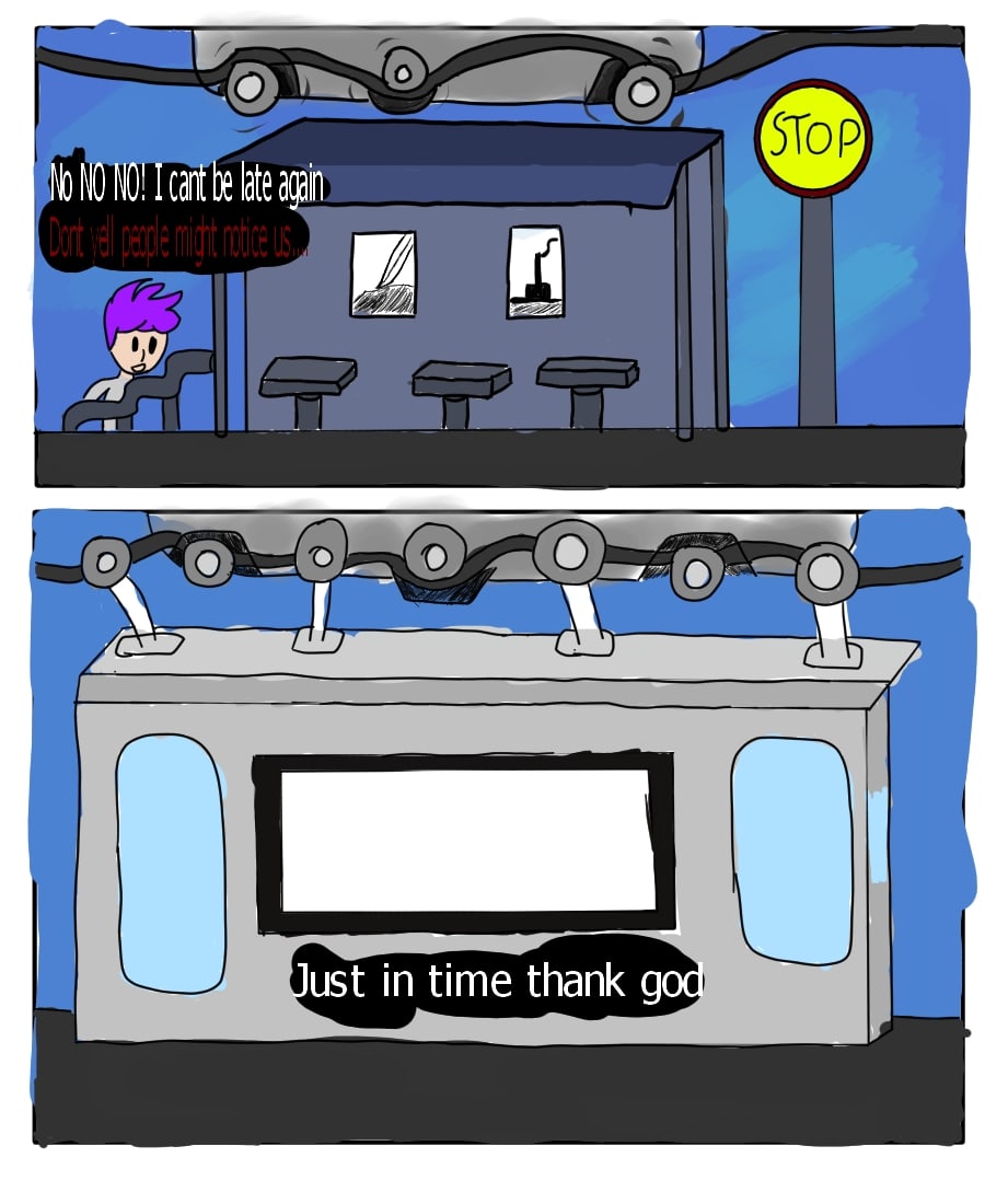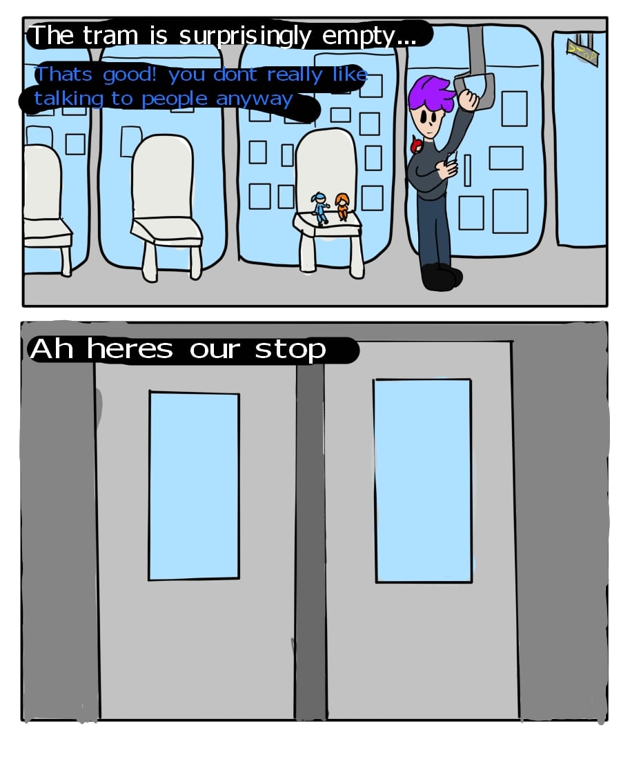 Mattie and the minis take the tram to his workplace.