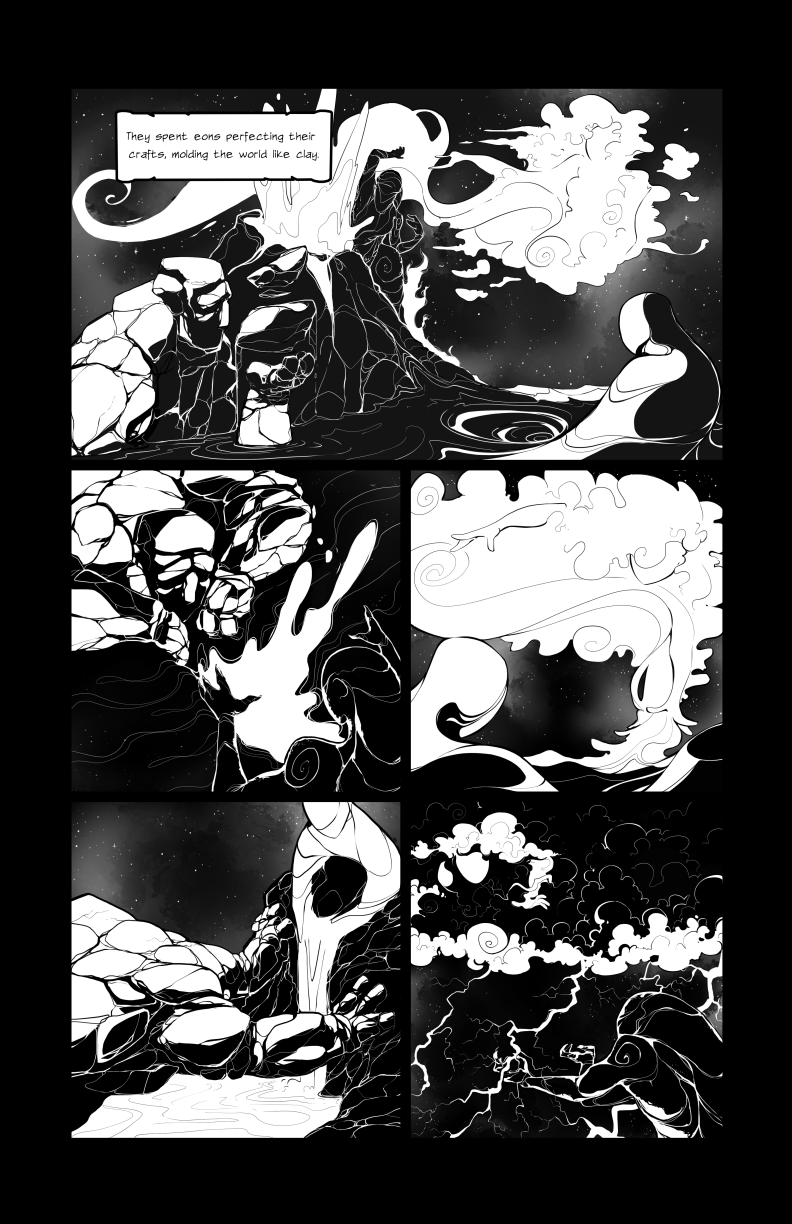 What are gods to do with an empty canvas, aside from experiment with their limitations? ----- Art by Mia Pearce (www.themiapet.com, @thisismiapet on Instagram and Twitter, themiapet on Twitch) If you like this comic or the world it's portraying, consider supporting it on Patreon - https://www.patreon.com/Uberphish