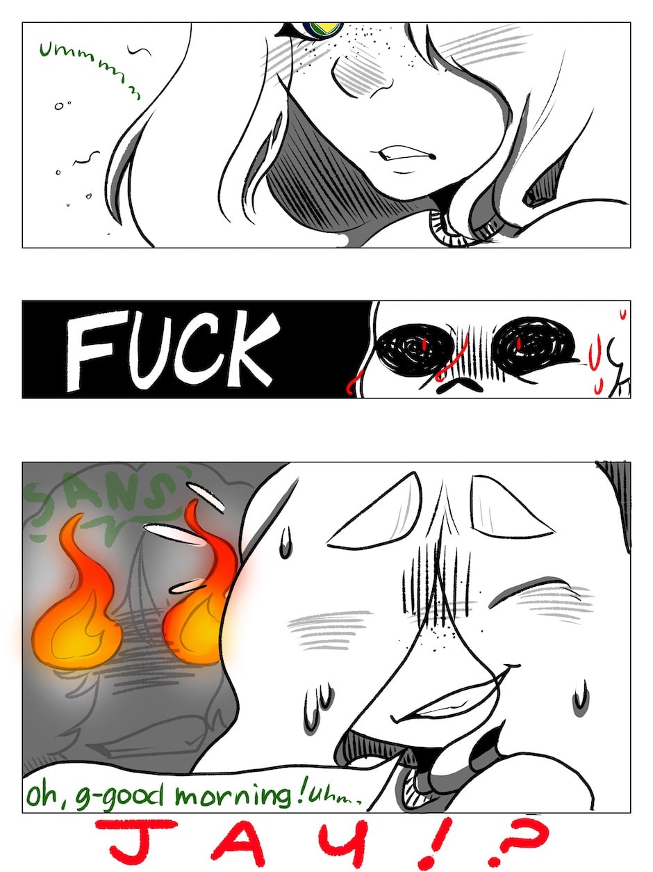 That moment when you accidentally check out your angry drunkard bestie’s ass and then ask to fuck hahaha lmao, so relatable. Told ya it was gonna get goofy happy.