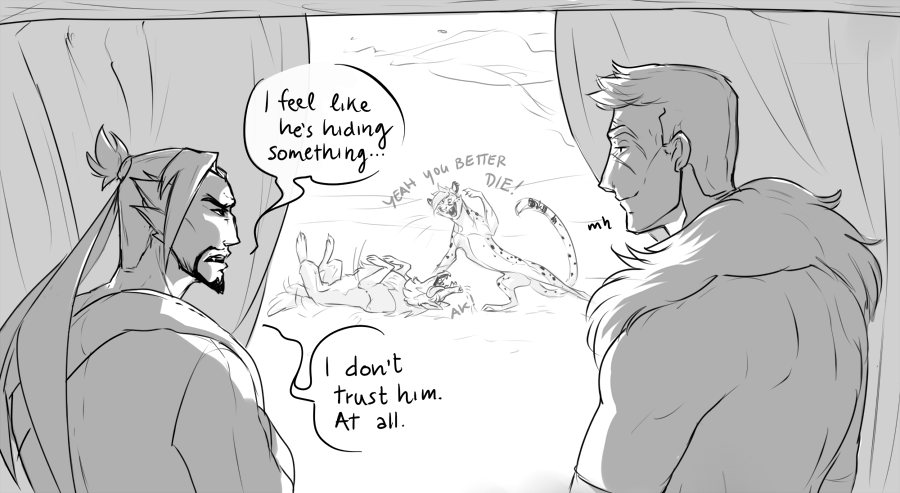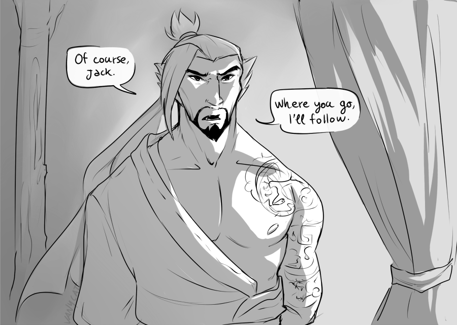 After thanking him for saving Tracer’s life, Morrison decides that Jesse can stay for a couple of days… but Jesse’s charming behaviors worries him. He knows that Tracer have no interest in man but he fears he might make a move anyway if they end up resting in the same bed (BOI HE WAS WRONG!), so he asks Hanzo to make some space in his bed for him just for a couple of days and Hanzo say yes even if he completely disagrees with the decisions. He trusts his leader and owes him his life so every decision Morrison takes, he’ll follow without any question.