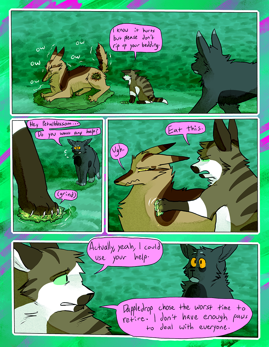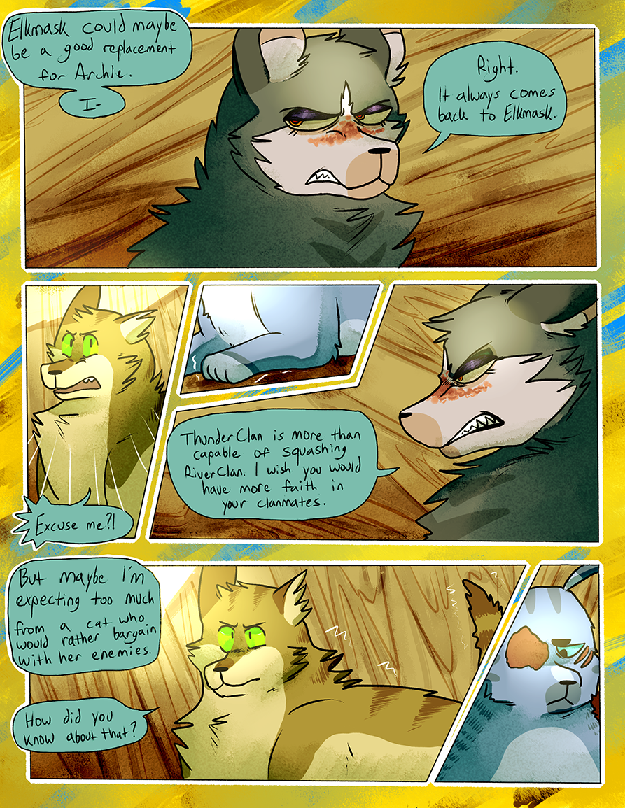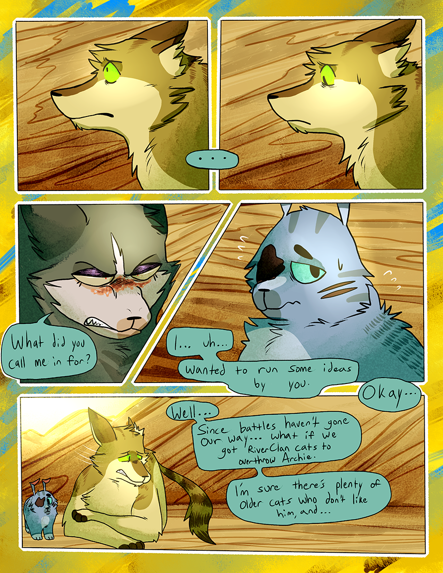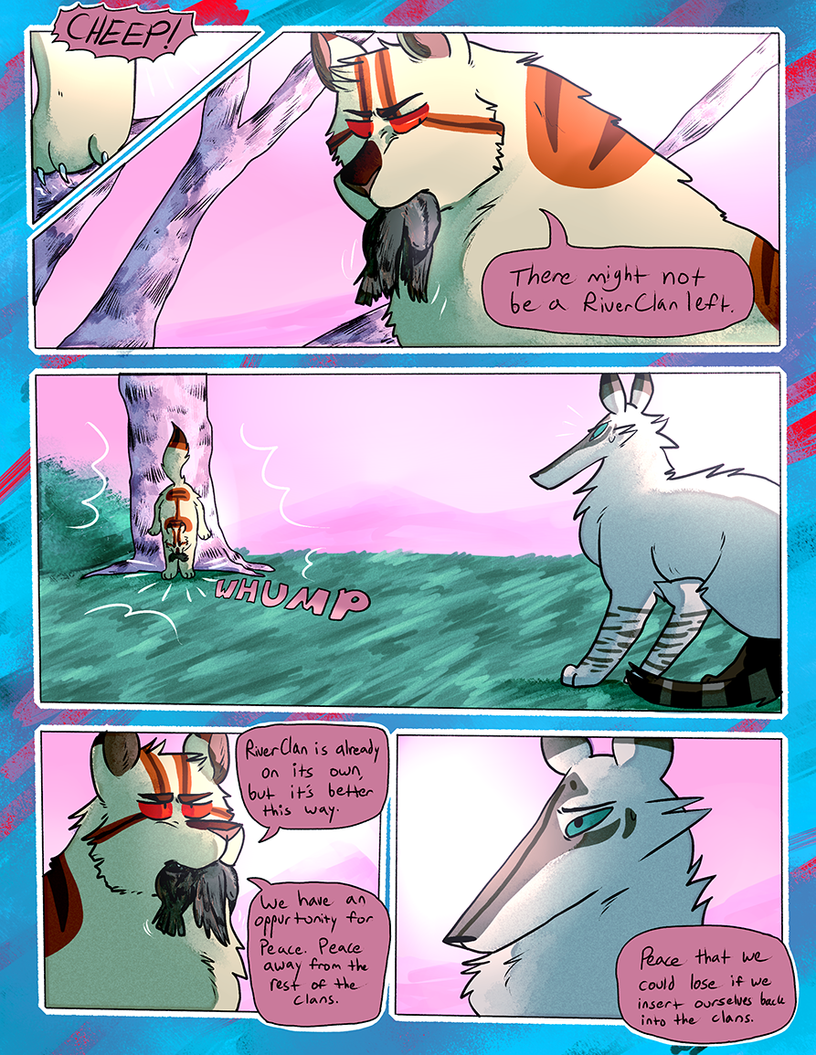 Ran from June 2015-June 2018. A Warrior Cats fancomic centered around an alternate universe RiverClan that was banished from the other clans on account of their clan being full of the blood of non-clan cats. This takes place in a different set of territories without the context or history of the canon novels.