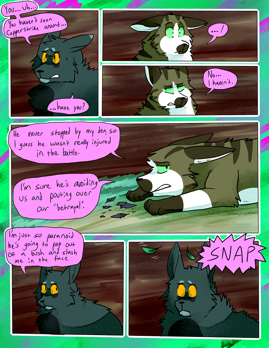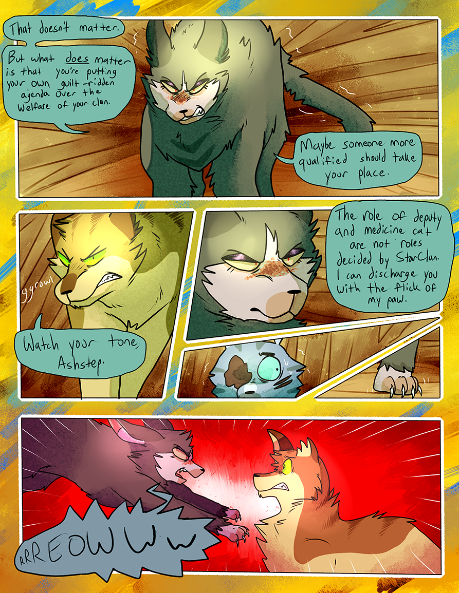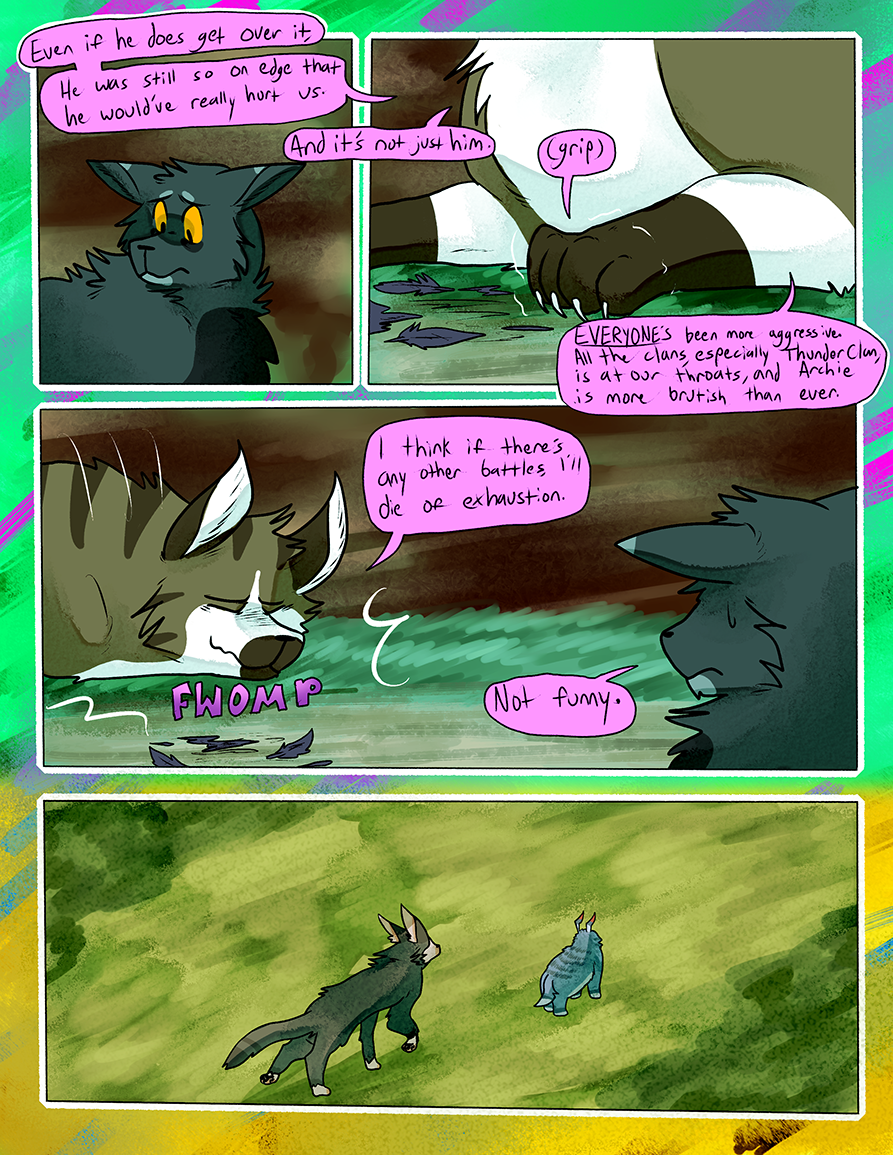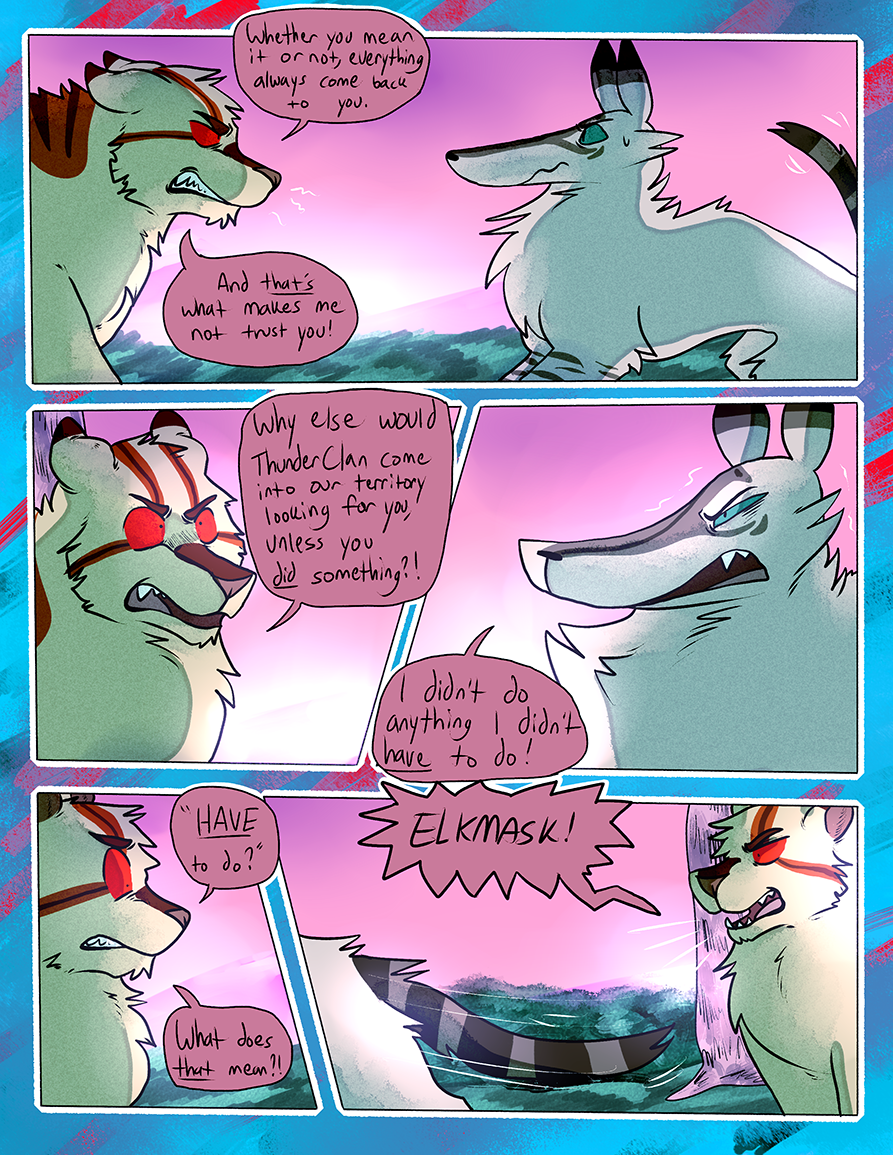 Ran from June 2015-June 2018. A Warrior Cats fancomic centered around an alternate universe RiverClan that was banished from the other clans on account of their clan being full of the blood of non-clan cats. This takes place in a different set of territories without the context or history of the canon novels.