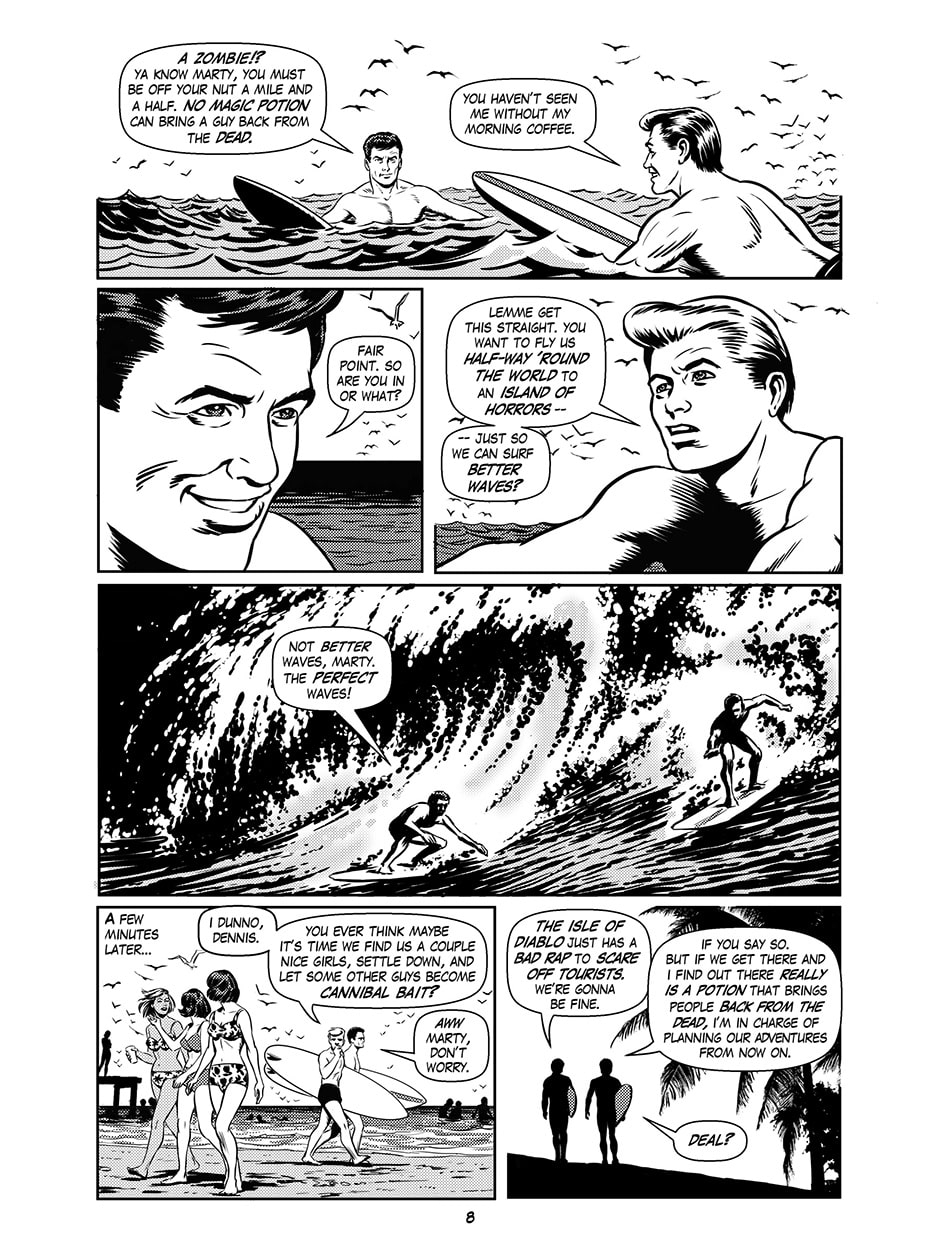 They spend their long summers worshipping dark island gods, tormenting souls, bleaching decorative bones... and surfing! But these wicked wahines are in for a spell of trouble when a couple of bachelor beachbums crash their black magic bacchanalia! Featuring gratuitous island nudity, scenes of intense pagan horror, and 10 tiki-cocktail recipes!