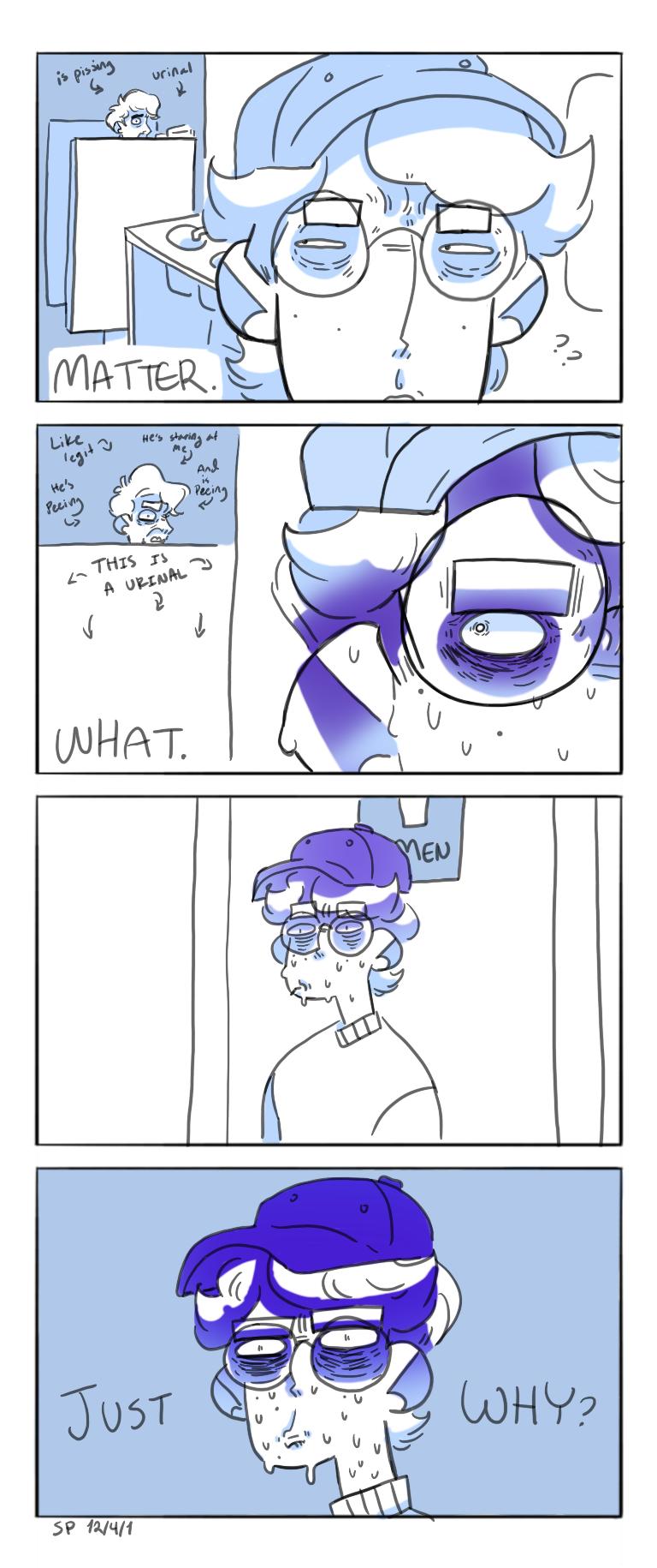If you're ever wondering: "Hmm, should I stare intensely at this stranger in the bathrooms?" Just know that no one likes you and you're weird cool cool thanks.