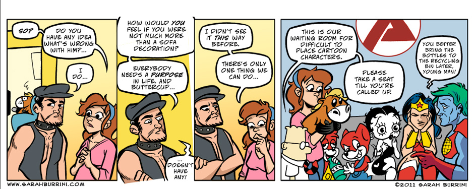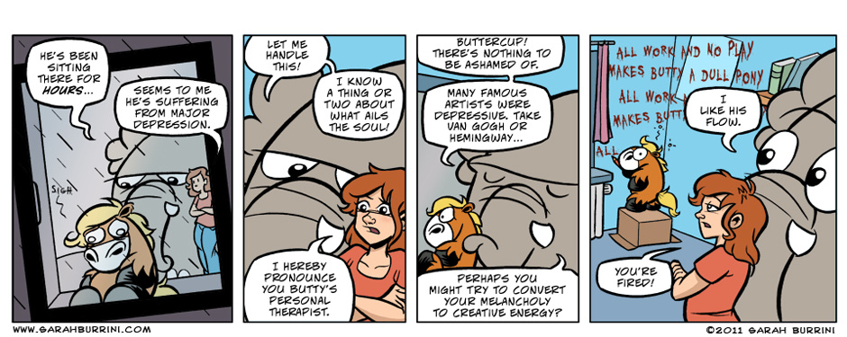 Life Ain’t No Pony Farm is a semi- autobiographical, but absurd comic strip about a cartoonist living together with an elephant, a mushroom and a pony.