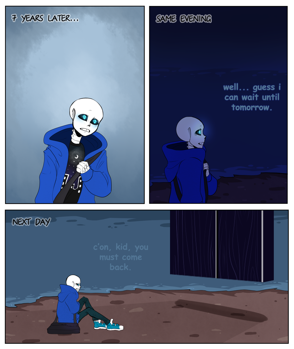 But yeah, I love this AU/ world and this world's history and version of Sans and Frisk (do they have any nicknames), I would love to see u return to this world and more characters of this world and other AU versions of this world's characters, and just more of this world in general and its Frisk and Sans, this AU is probably one of my fav. things u have done, but if not, oh well, we get a prefect a comic for this comic, and these 2 got their happy ending. :)