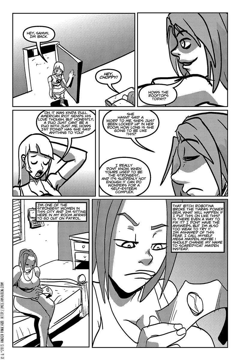 Mega Maiden is still recovering both physically and emotionally from the beating she received from Robotina. Choppy manages to get her to come out of the house after weeks of being depressed. But when the girls bump into a electric-powered super crim, and the tiara is acting dysfunctional will Mega have what it takes to save the day?!