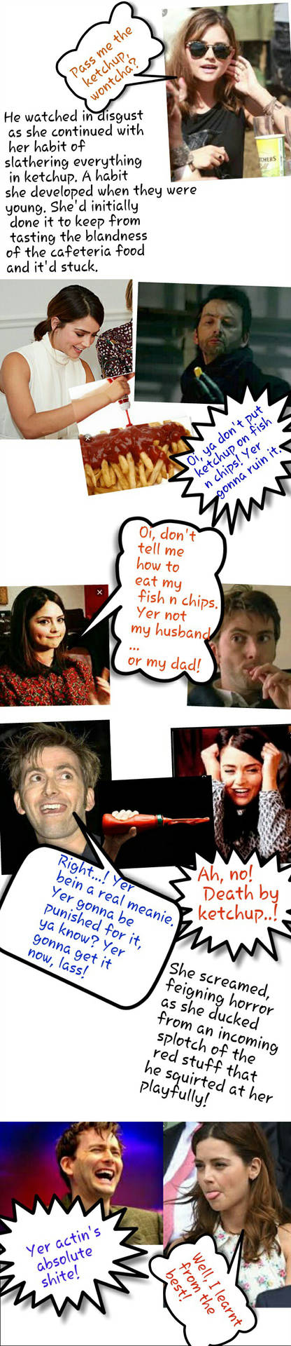 Ruth and Jack debate on whether ketchup sits right on fish n chips...& Jack almost initiates a ketchup fight with his straight-shot, Clint Eastwood gunslinger style ketchup squirts!