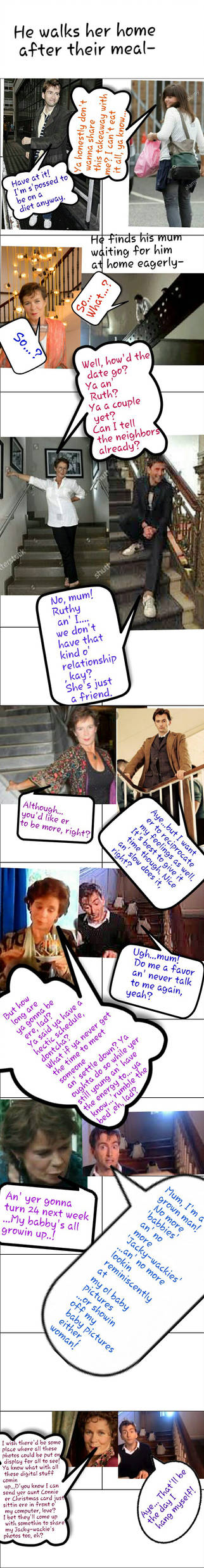 We've all got that nosy mum who lurks around to dig her nose into the juiciest bits o' our love-lives....& 'Jacky-wacky's' mum is no different! (Cameo by Celia Imrie as Jack's mum/Mrs. O'donnell)