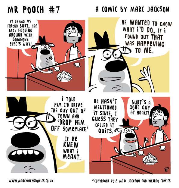 Mr Pooch is back and this time, Burt has a secret, can our hairy hero help out?... ©2015 Marc Jackson and Weirdo Comics