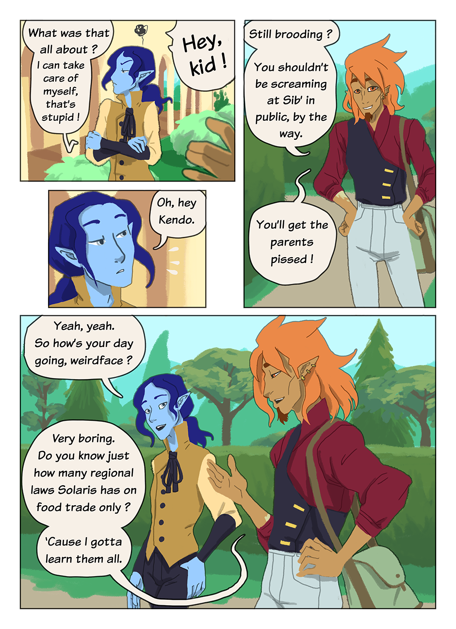 There we are ! The graphic overhaul ! I hope you like this new style as much as I do. I might take the time to re-do the first 13 pages, but right now I'm falling behind my schedule so this'll have to wait.