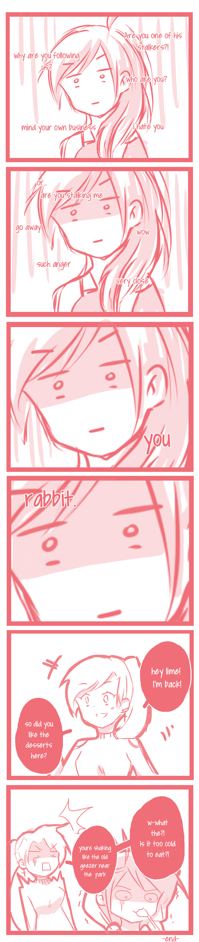 I accidentally looked at a couple while eating desserts with a friend of mine. lol the way the girl looked at me was really scary. especially that she was just looking at me for 2 seconds!