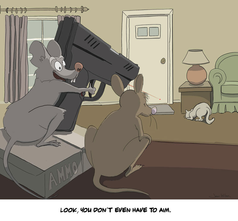 #laser #mouse #cat #tardy #farside #Comic #funny #comical #gun #ammo