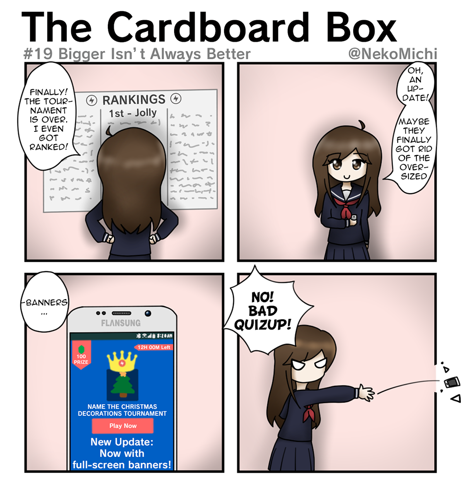 (Originally uploaded on December 3rd, 2017) Glu's response to user complaints about intrusive tournament banners? Even. Bigger. Banners.