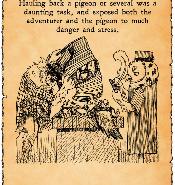 It used to be far too often that adventurers would find more helpless or abandoned pigeons on their journeys. A good-willed adventurer would not abandon a trained bird, and thus ends up imposing himself to additional luggage.