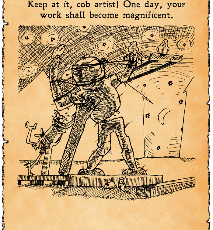 Artistry is hard work, and working with cob seems to be especially complicated when it comes to detailed works like this. It makes me question, why even choose such an unfitting material? Perhaps she enjoys the thrill of challenge, of ways to make the impossible the possible! Tell me, cob artist. Tell me what drives you!