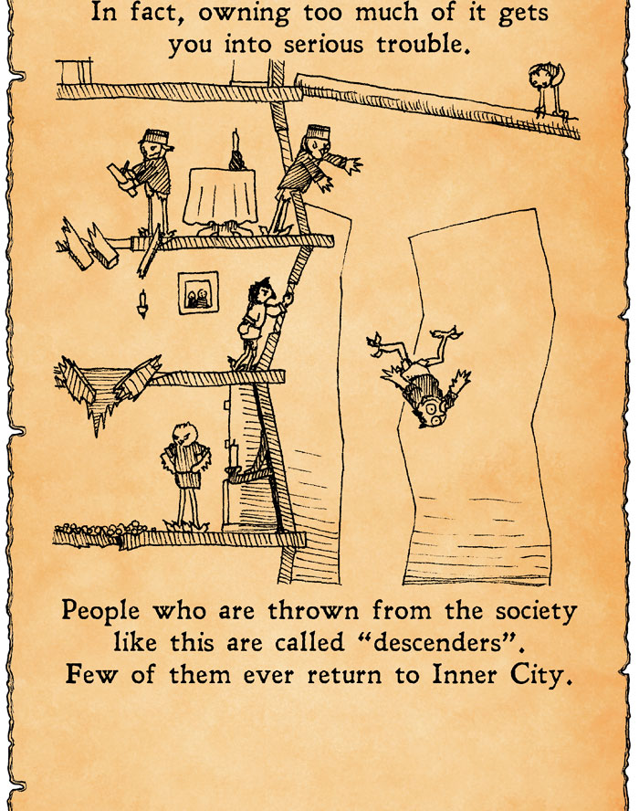 People who are unable to live by this absurd work-to-get-rid-of-your-money system quickly fall out of the lofty society. And unlike with those who fell down accidentally, there is no going back for these people.