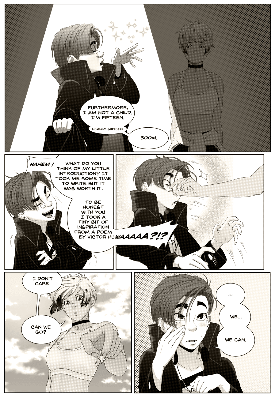Now that we have caught up with the pages released on the website (http://zerozero-zerozero.com/), I'll keep releasing one page/day until the end of the first chapter.