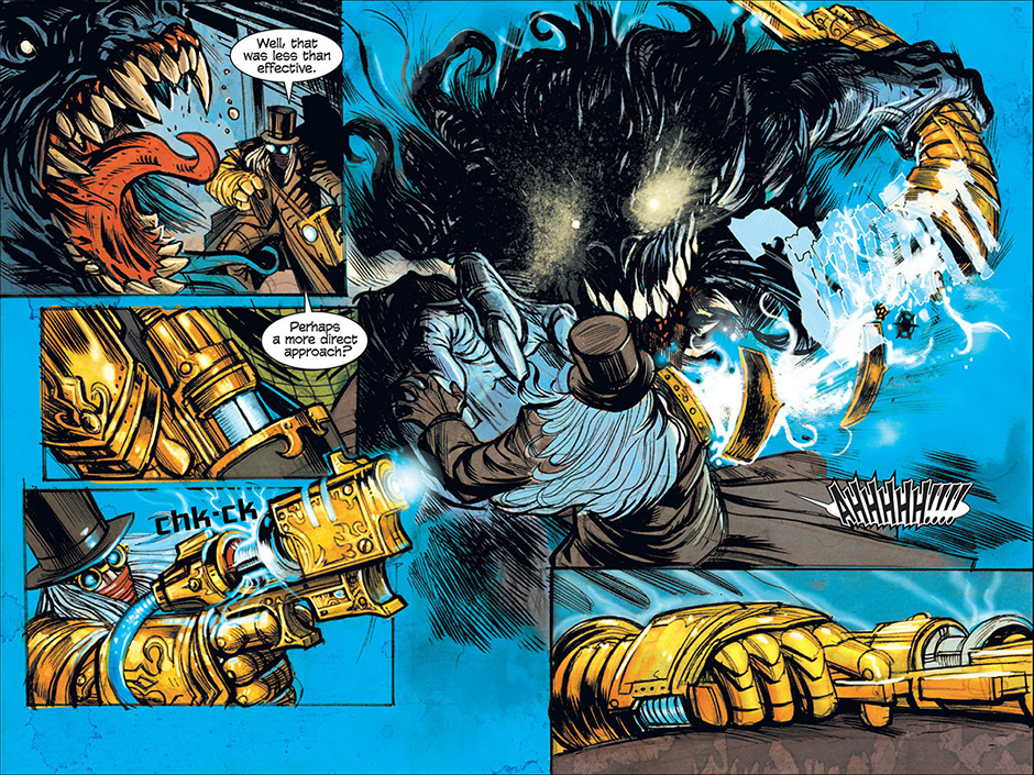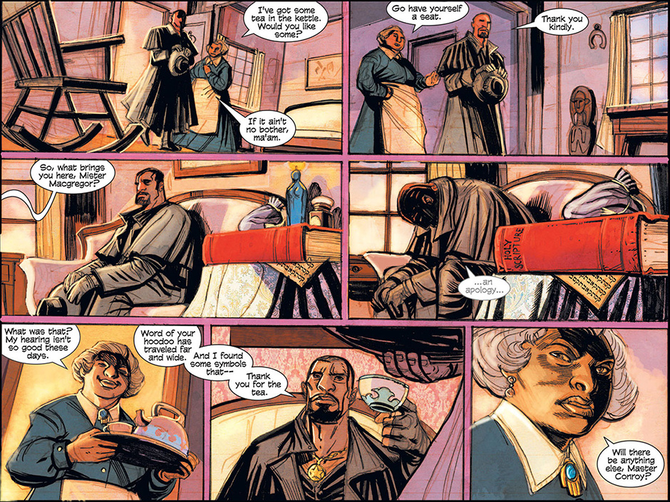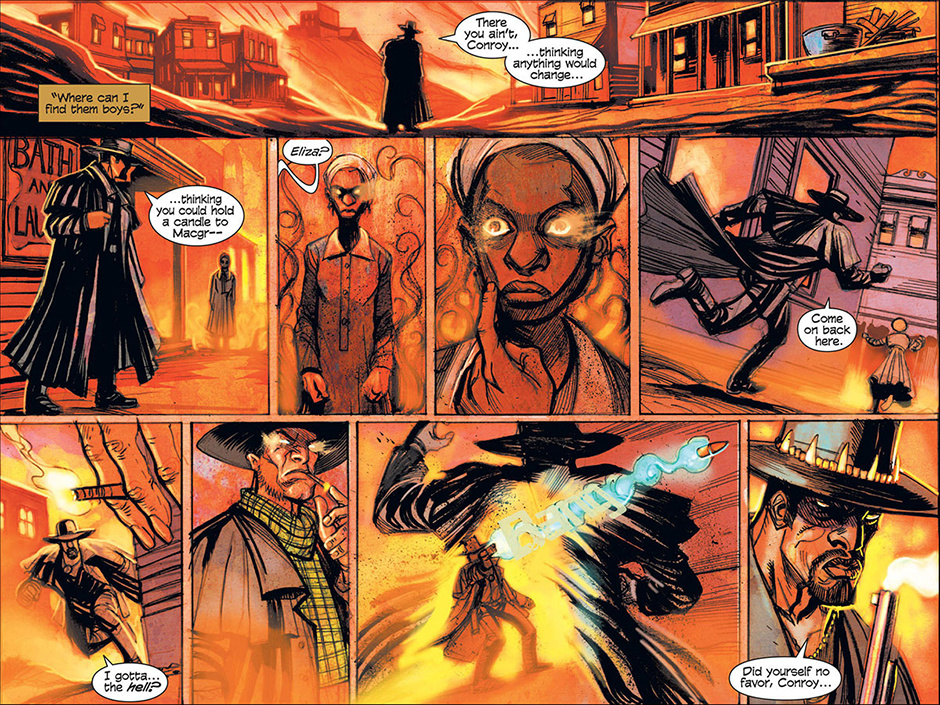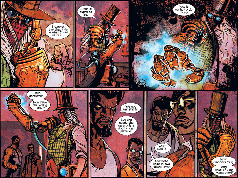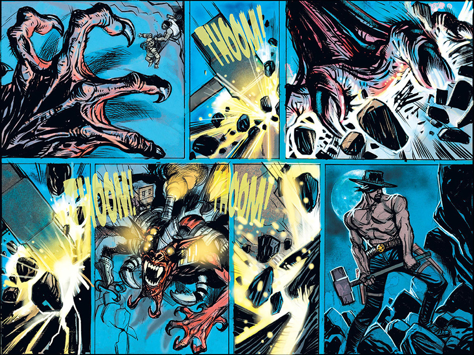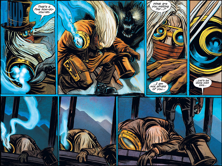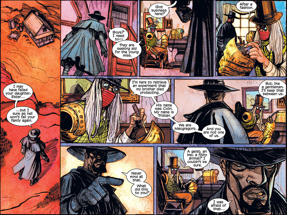 The horrors of Blest, Texas then ripple out to the mountainous mysteries of Ragged Rock, Oklahoma where a new detective, also calling himself Macgregor, investigates a series of murders following a bizarre train robbery. Uncovering an age old vendetta, our mysterious lawman is forced to do battle with a steam-driven, technological monstrosity!
