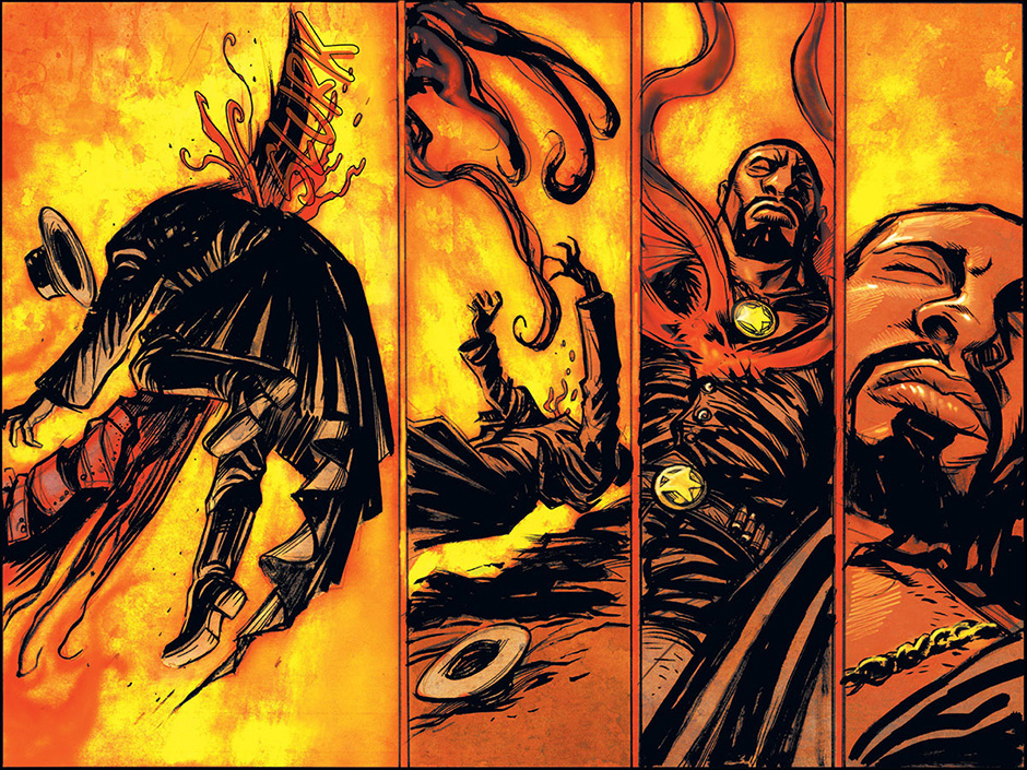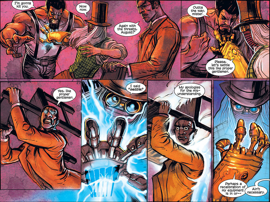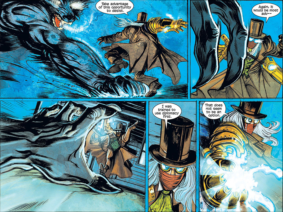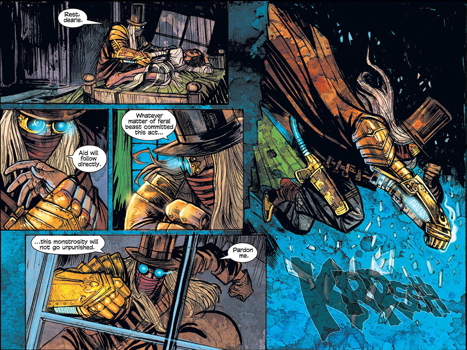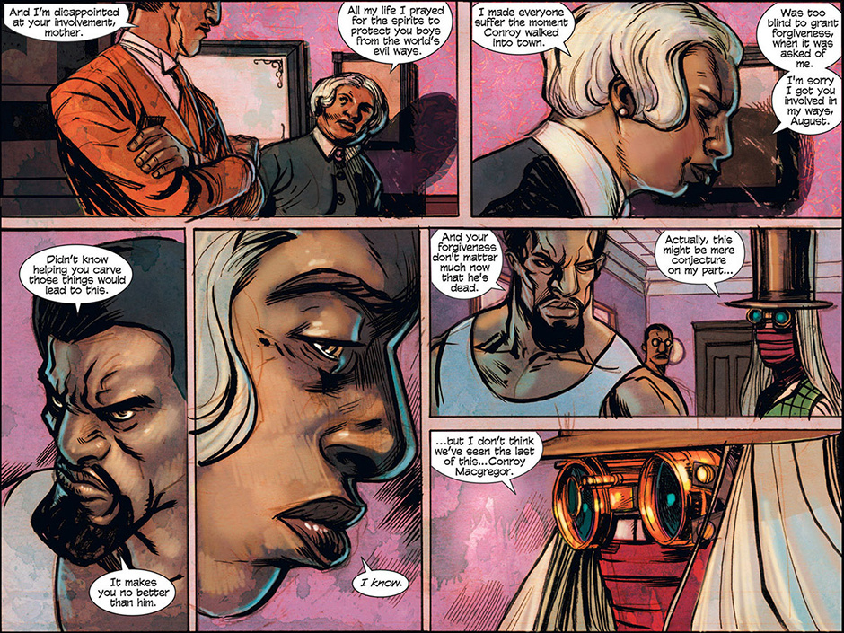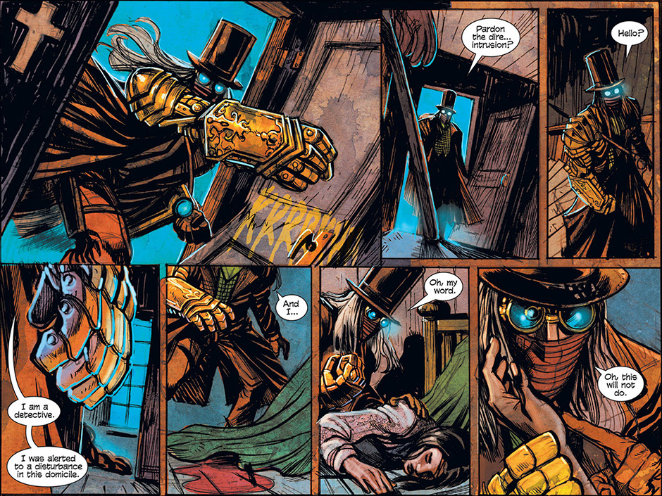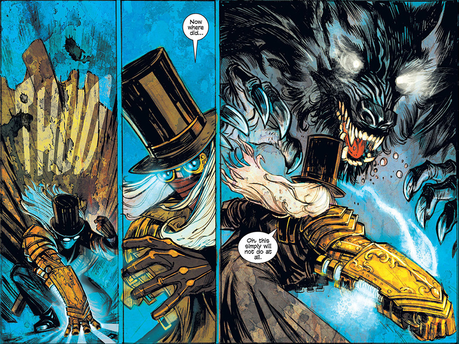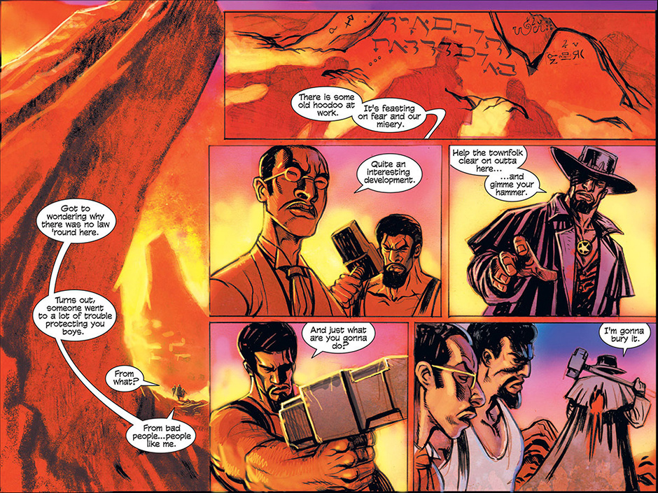 The horrors of Blest, Texas then ripple out to the mountainous mysteries of Ragged Rock, Oklahoma where a new detective, also calling himself Macgregor, investigates a series of murders following a bizarre train robbery. Uncovering an age old vendetta, our mysterious lawman is forced to do battle with a steam-driven, technological monstrosity!