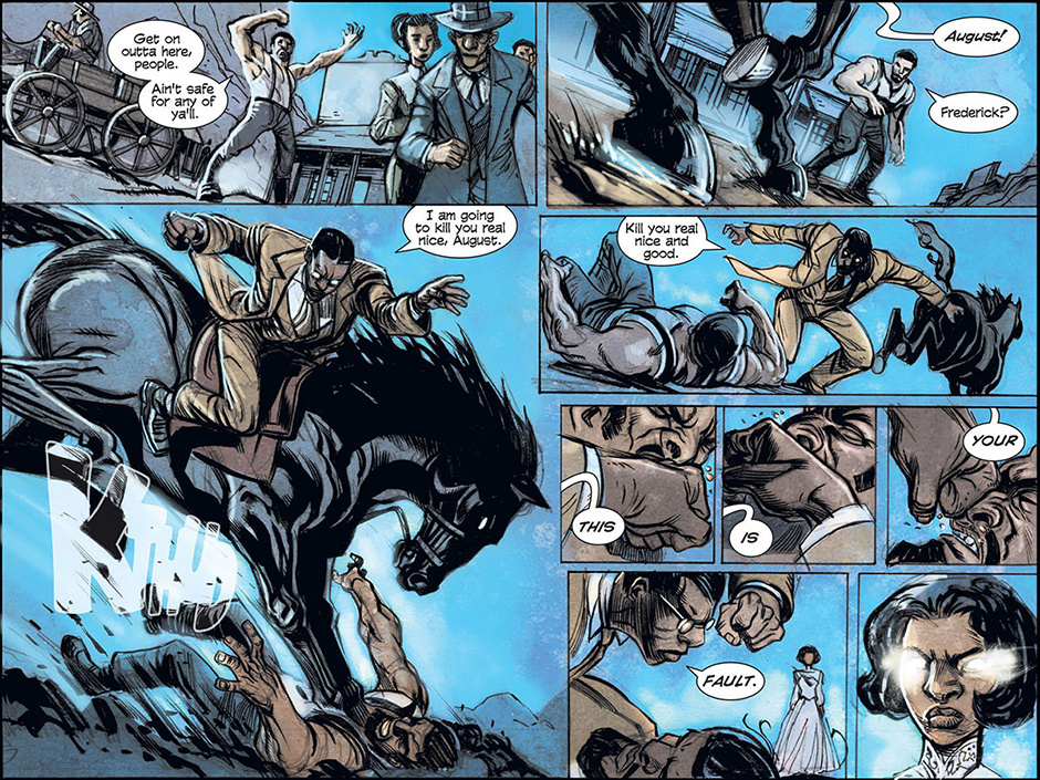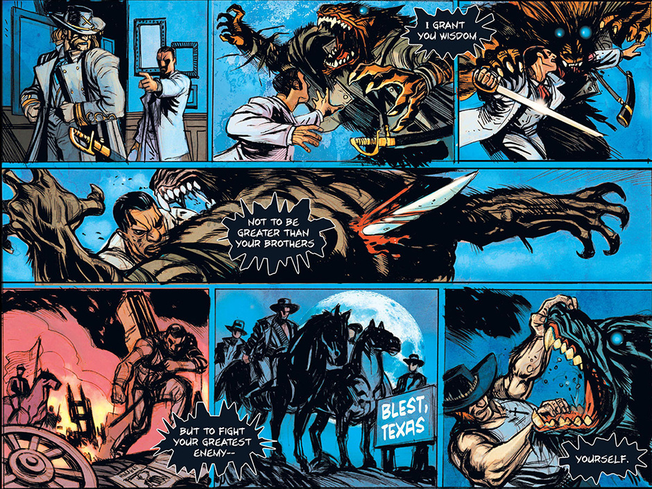 Winner of the Harvey Award for Best Online Series, HIGH MOON begins with a gruff bounty hunter, Macgregor, investigating strange happenings in the dusty town of Blest, Texas. While Macgregor uncovers the town's dark secrets, he tries desperately to keep his own hidden. At sundown, there'll be a showdown... at HIGH MOON!