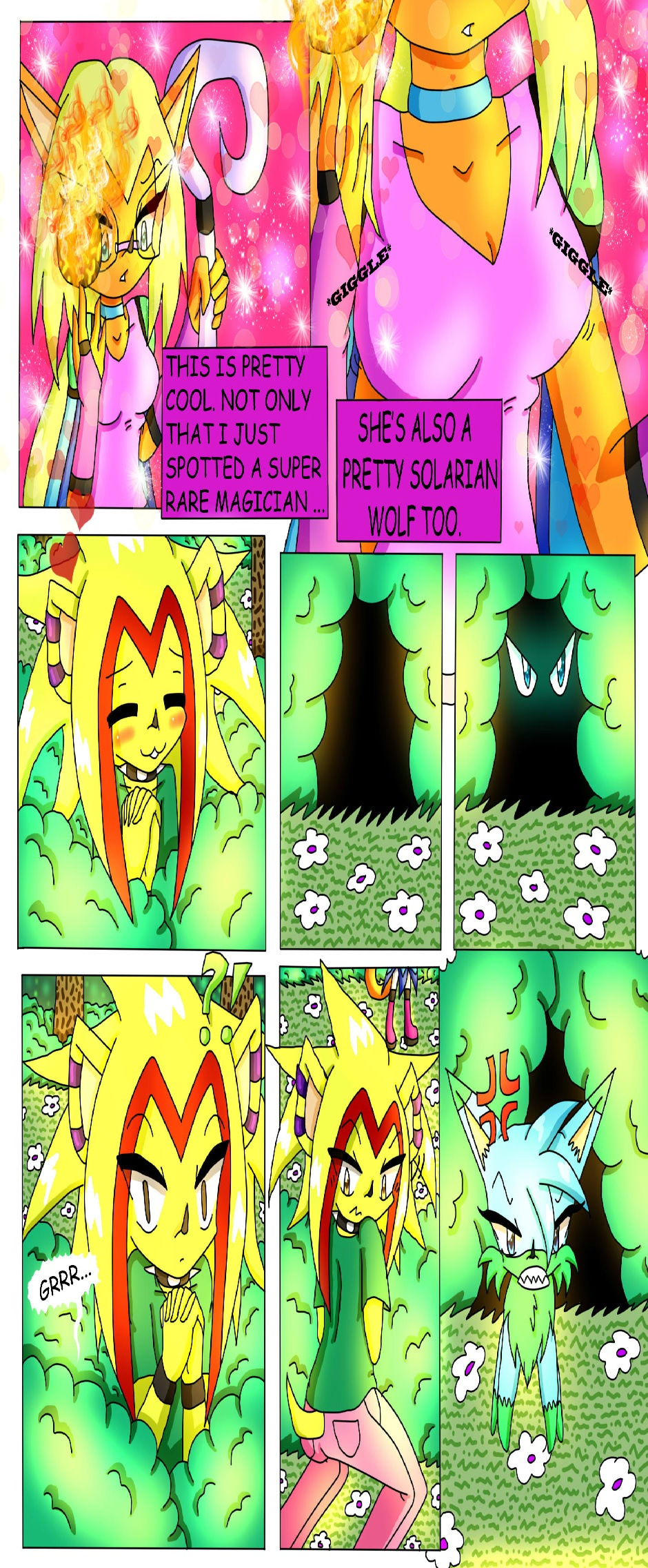 #The_Magical_Idiots #TMI #Comic #male #female #busted #forest #park #woods #flowers #hedgehog #wolf #solarian #magician #Fox #familiar #jeff #kayla #Blizzard #magic #Fire #fireball #glow #watching #caught
