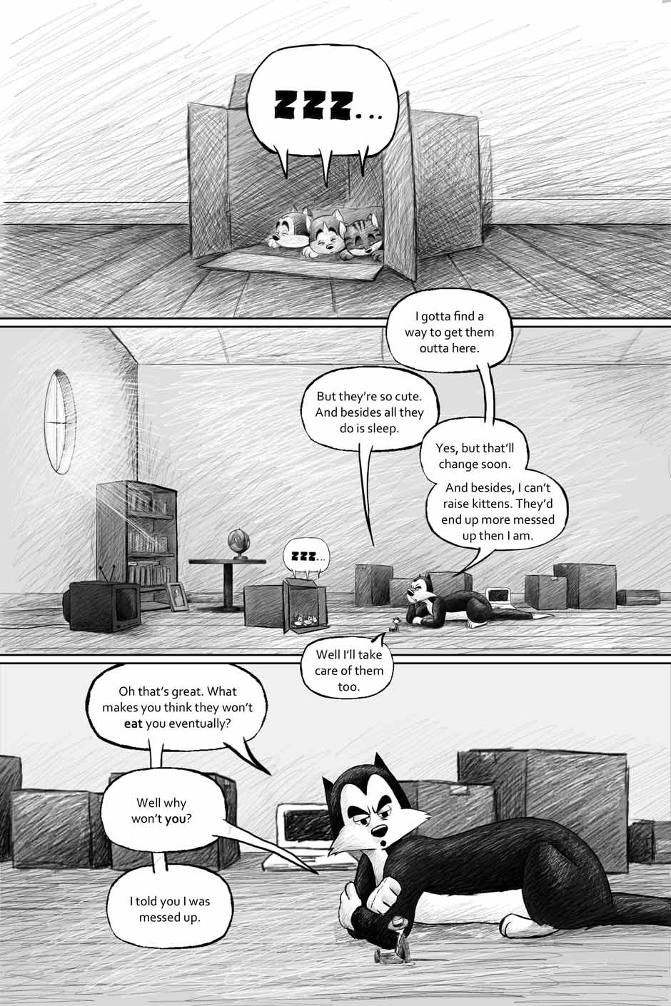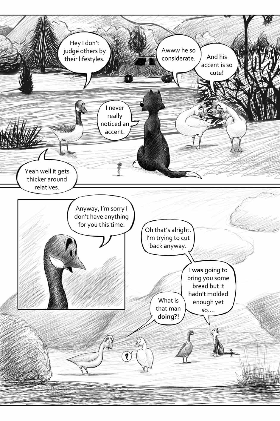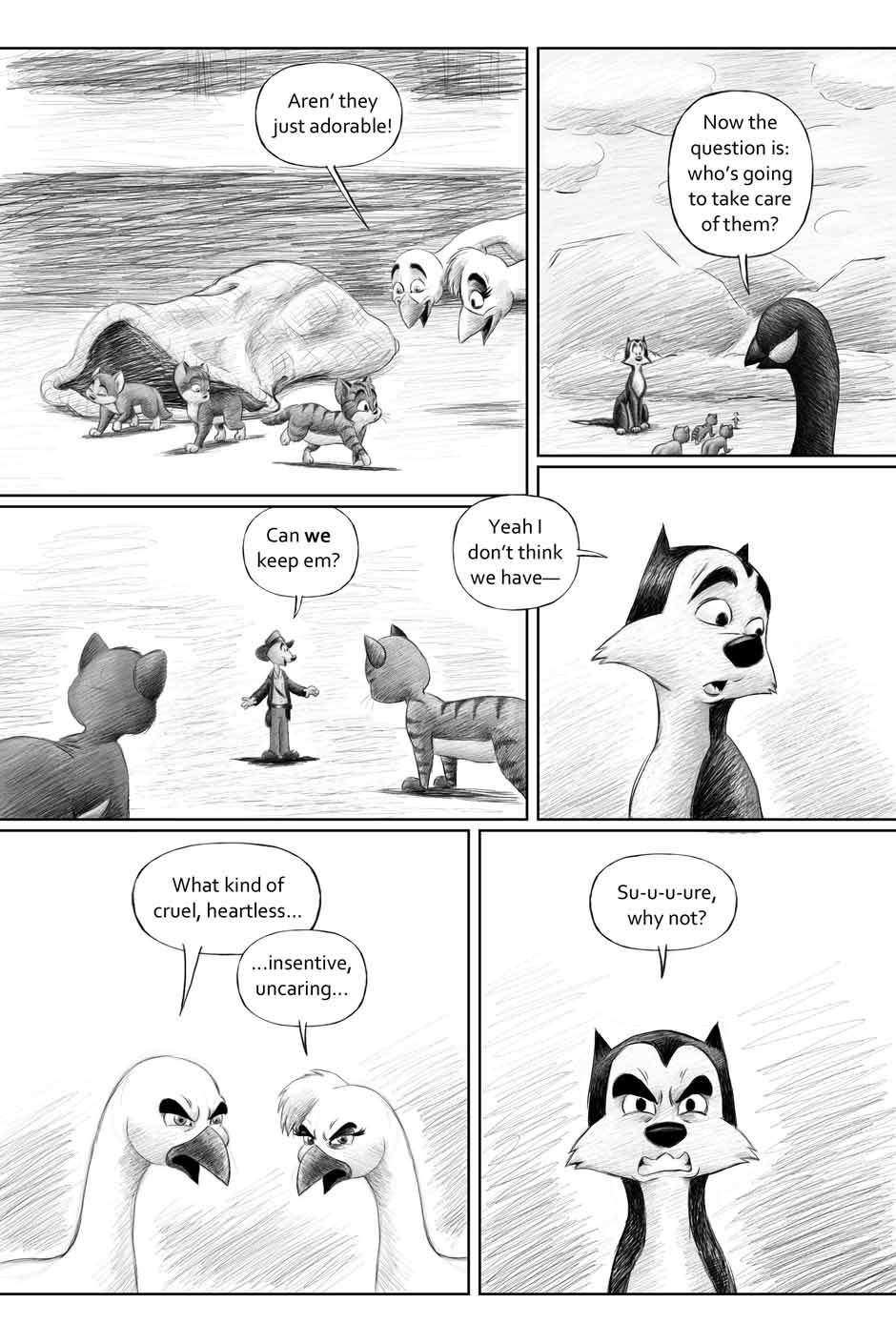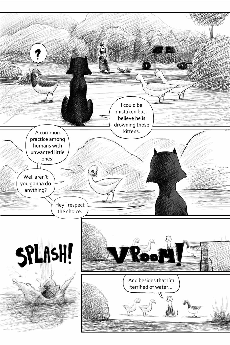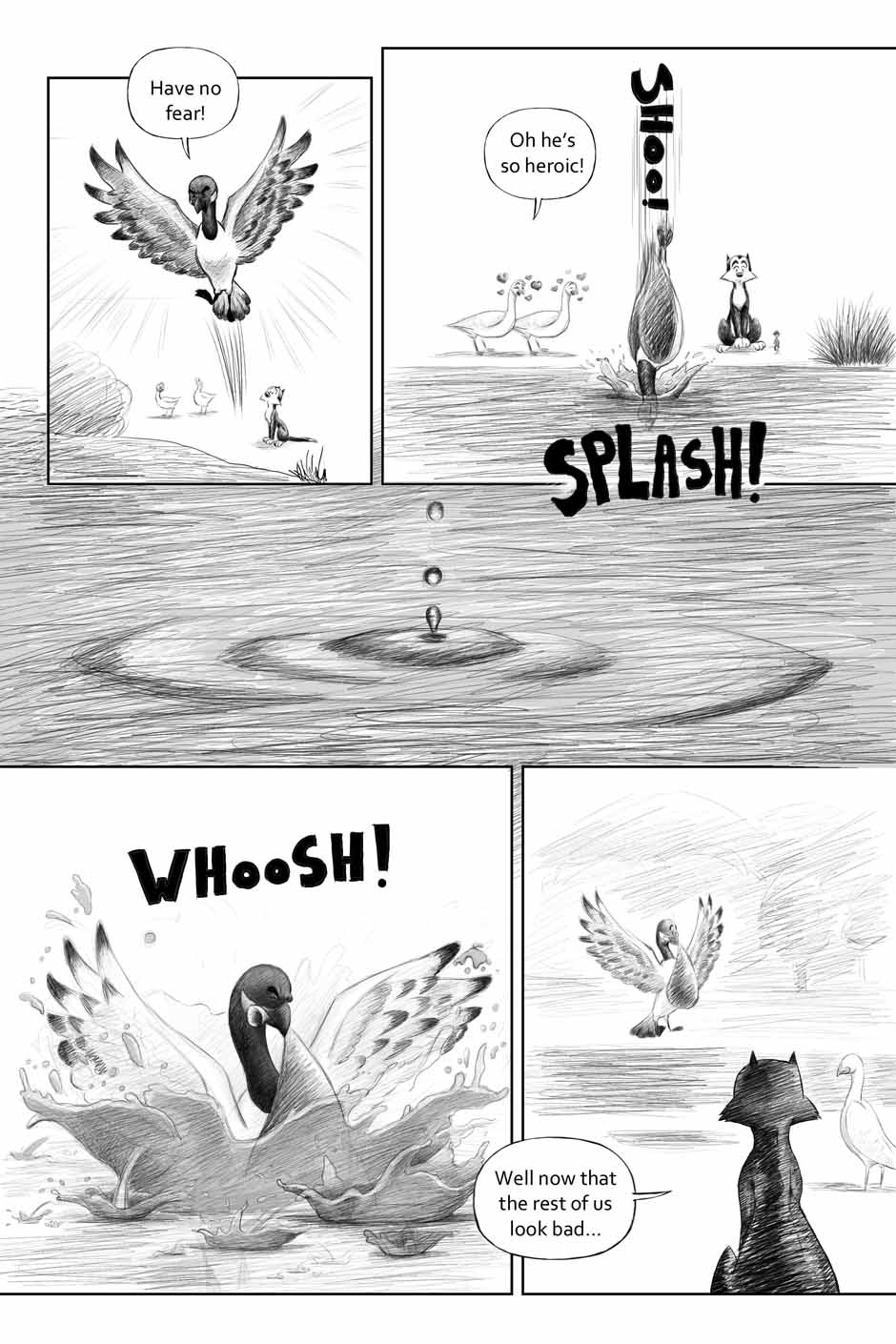 For this one, I tried to lessen the page count. So I ended up putting a little too much content into some of the pages. But, you live and learn I guess. Still, I think the story and the artwork still hold up. I was doing that hatching style of shading which maybe didn't work. But it was just another step in the evolution. Otherwise, it still looks mostly okay.