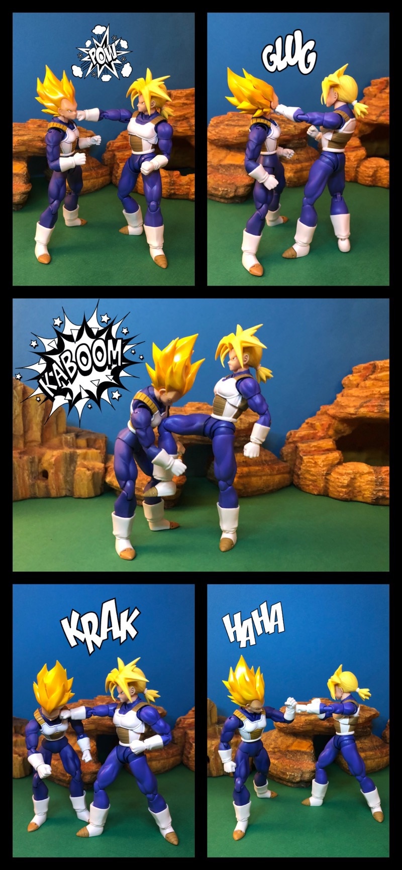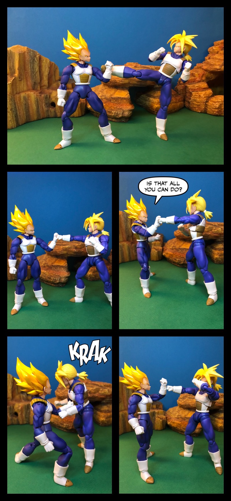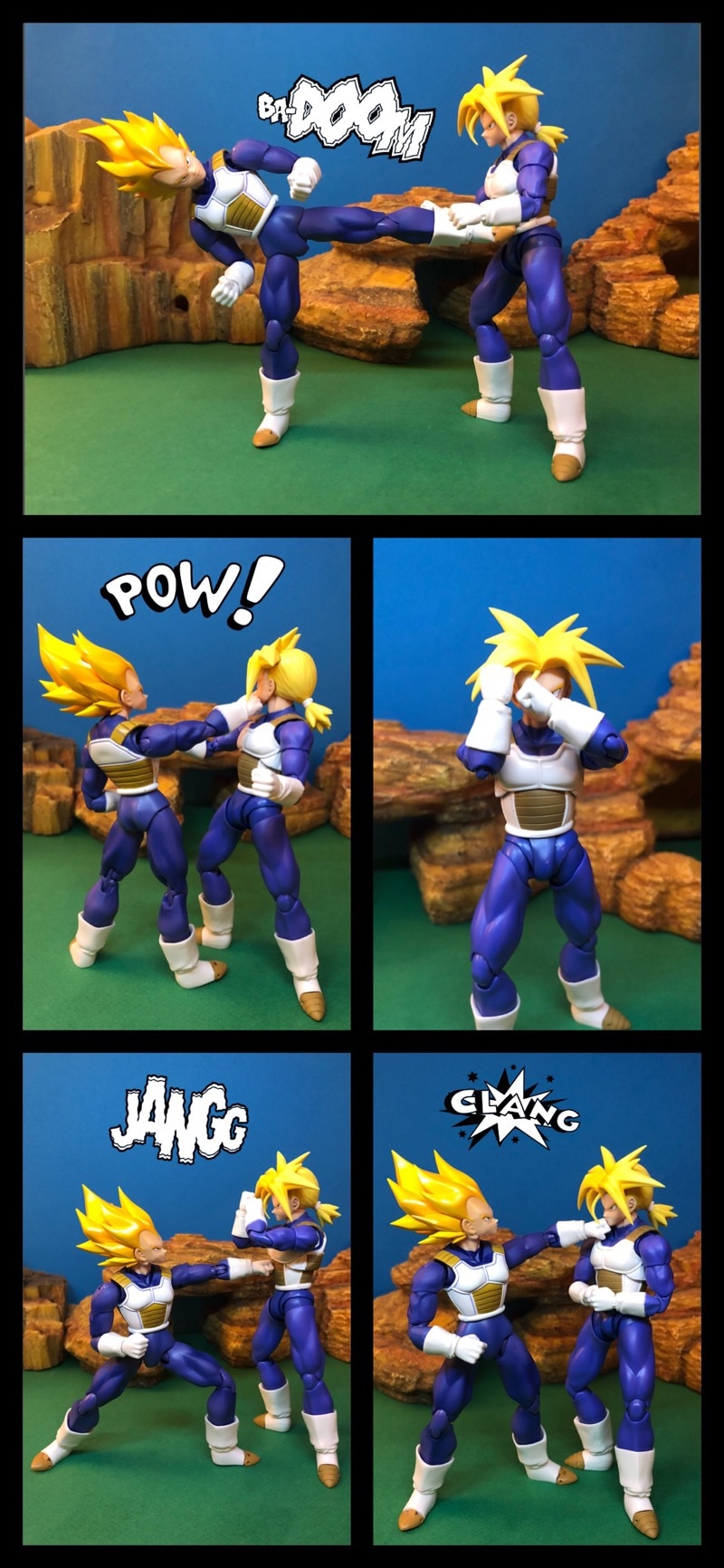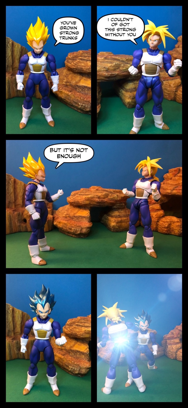 Vegeta and trunks train together as gohan and goku finish their training