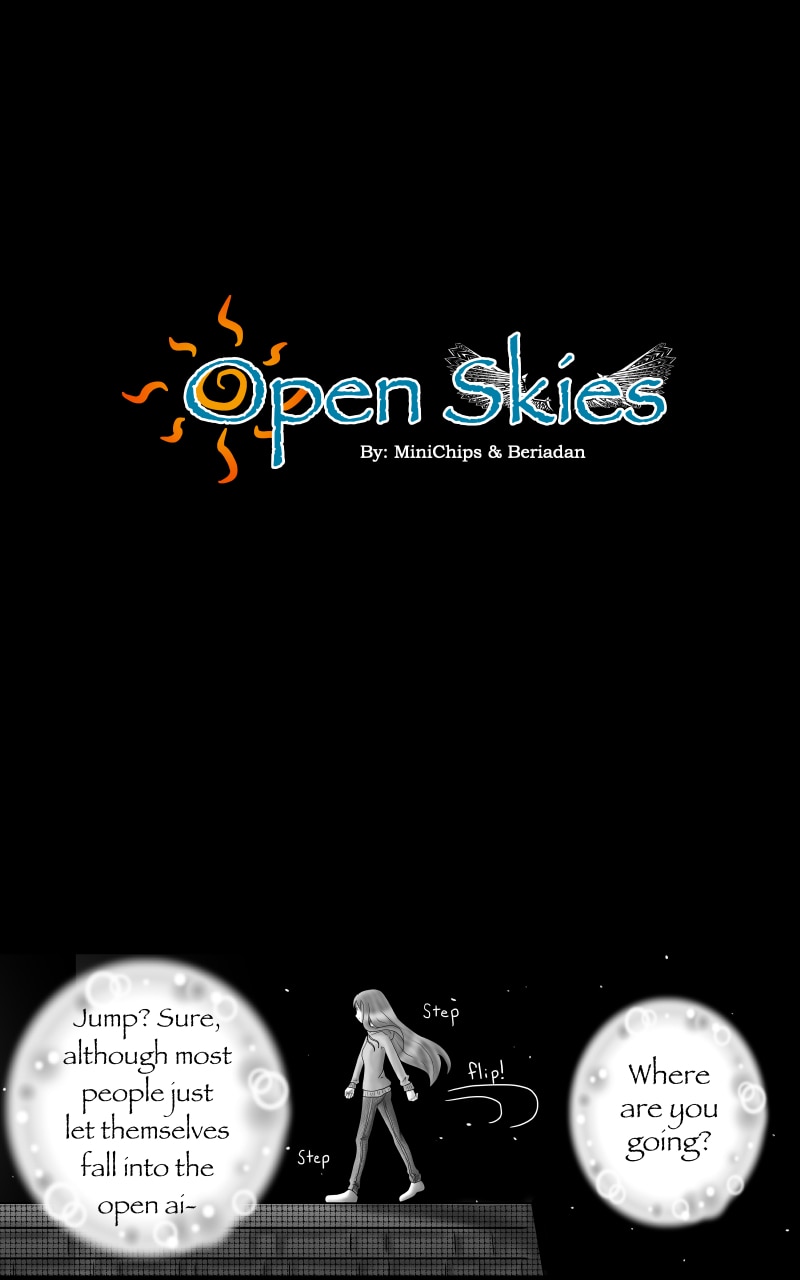 Open Skies is a story following Elizabeth, a girl with an empty heart who was given a new chance at life- and the ability to teleport to a new place whenever she wants. All she had to do was leave her former life behind, give up her memories, and jump off a building. This is a story of self-discovery, friendship, hardships, and hope. Will you jump in with me? Or rather, jump off?
