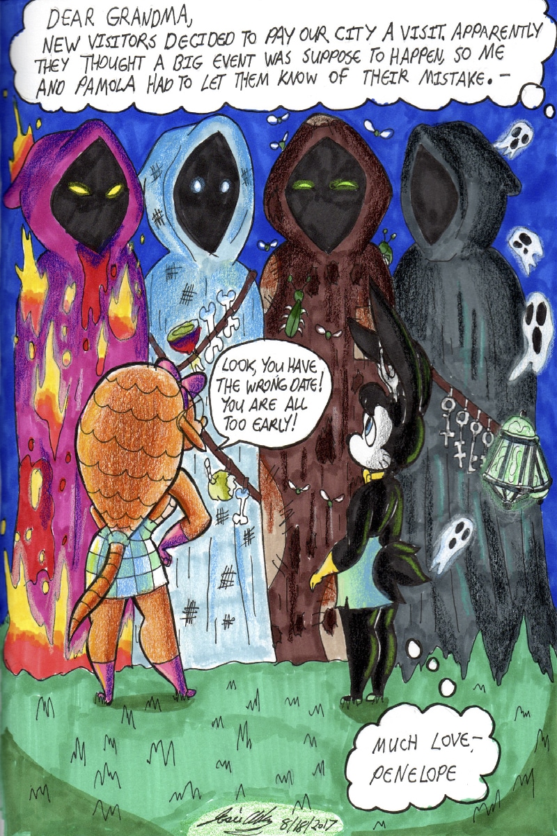 This was the last page that I have drawn in my sketchbook. The rest is drawn on little protective comic boards.