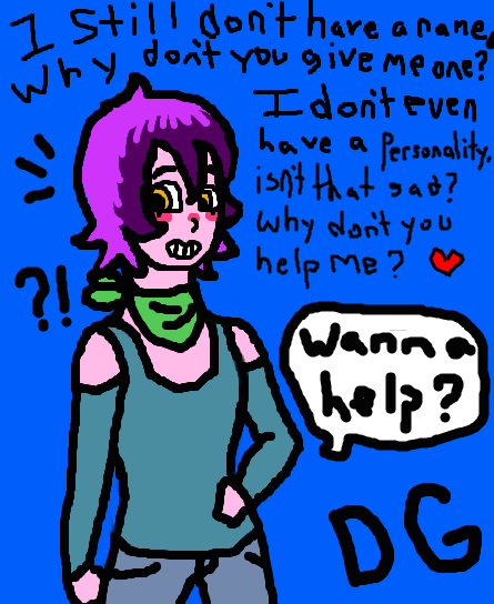 OMG! I can't stop laughing, "I don't even have a personality" OMG that line was just very funny for me. I know I'm super late, so this character might already have all those questions answered, but I'll give it a shot anyways. Okay, I'm gonna say this is Blueberry and she is really sweet, but if you hurt her friends she can, and will, kill you!