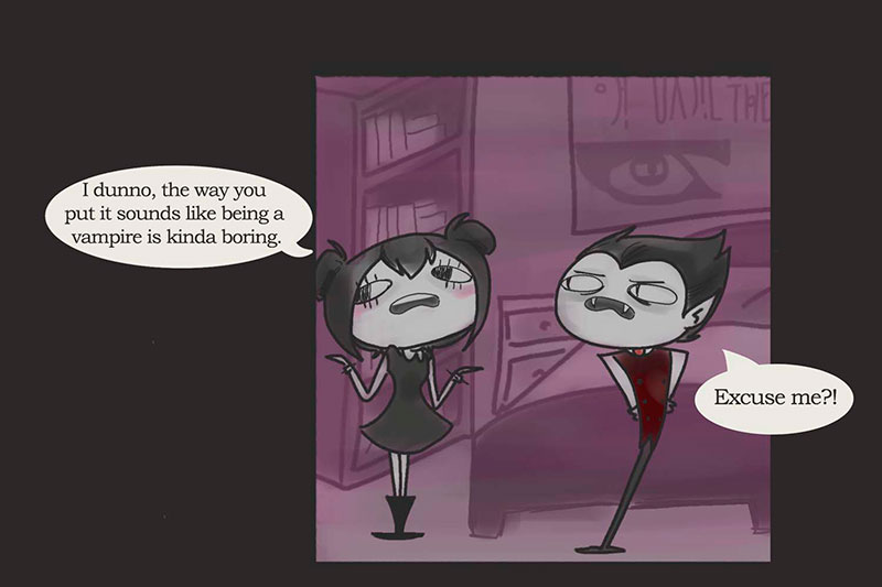 She is a mortal, he is a vampire. One fateful night, they became best friends. Together they'll meet unlikely people, visit the underworld, summon demons and fall in love, typical teenager stuff!