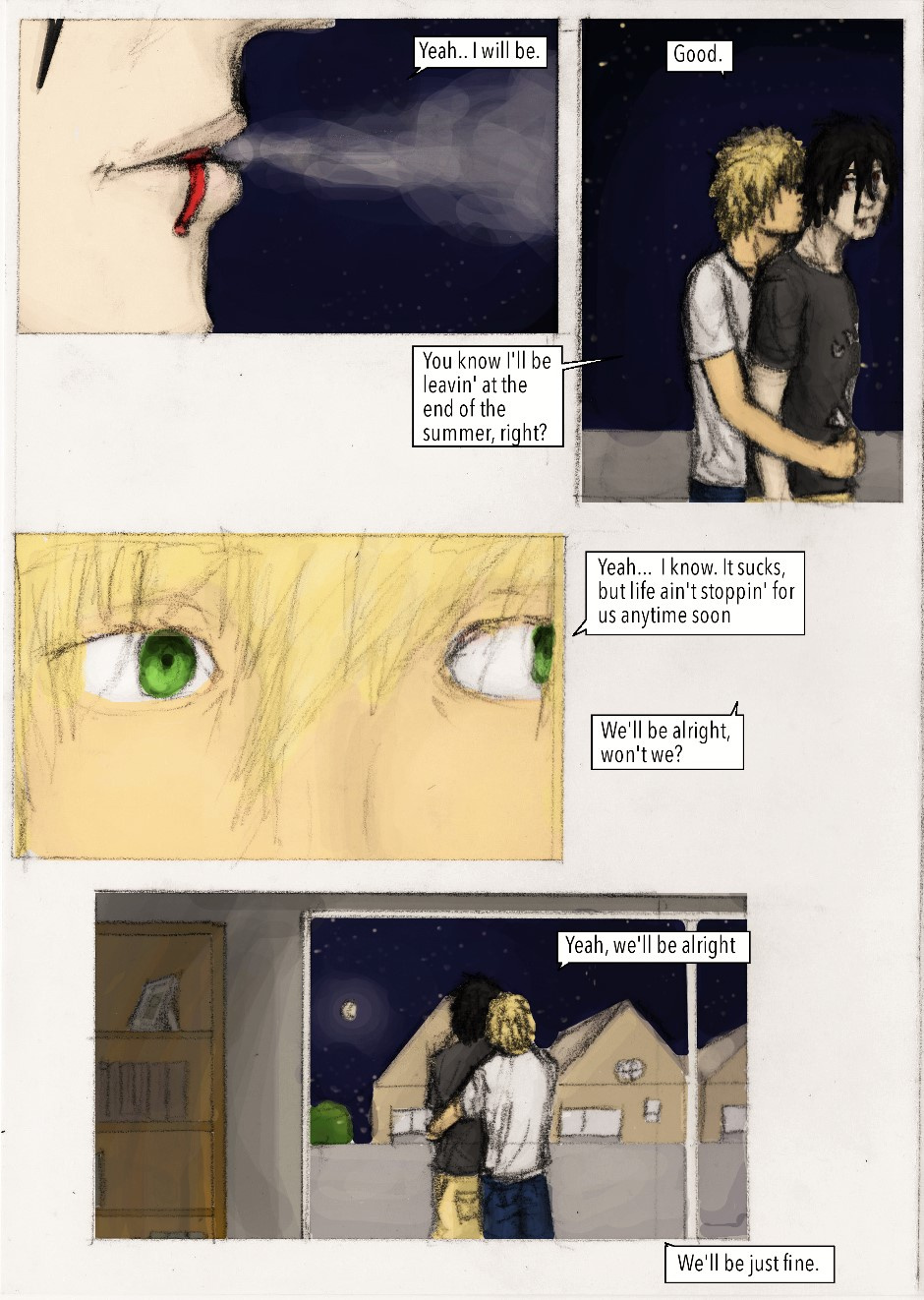 Constructive Summer is the summer-spanning story of Alexander Finn and Zachary Skelton, two schoolmates getting to know each other better over the course of a summer, and a story about boys being (queer) boys, frustrating jobs, a boatload of Rock references and the blues of teenage crushes.