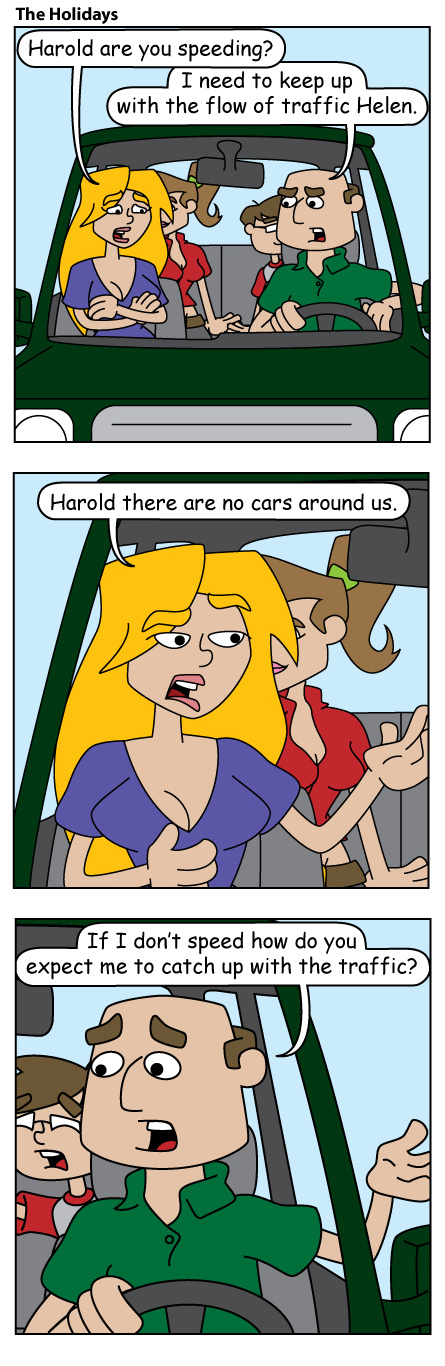 The Holidays is a family of four on vacation. They spend most of their time cooped up in the family car, and the rest of the time they fall victim to various tourist traps. Enjoy a dose of family fun every Friday with Harold, Helen, Hailey, and Harvey Holiday!