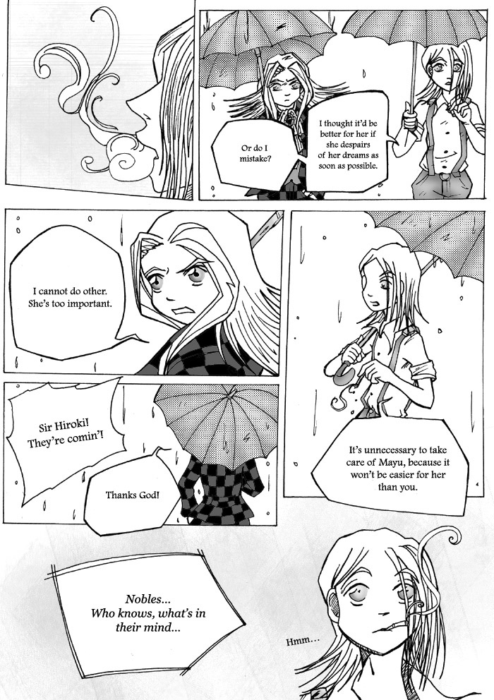 Hiroki told Mayu, that he is a mortal too in a way. Koichi - the chef of the House - arrived, and asked Ririn to make some purchases. Mayu wants her to open the House’s gate so she keeps her company...