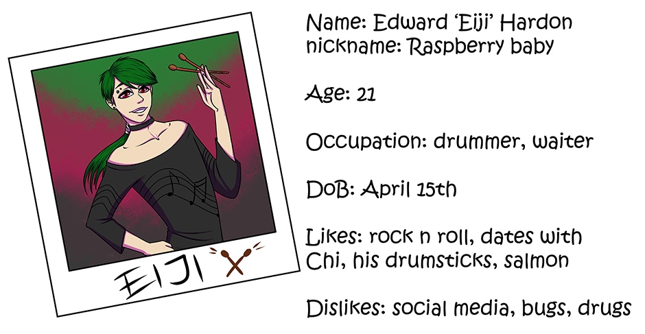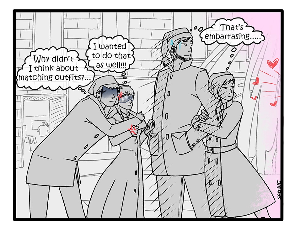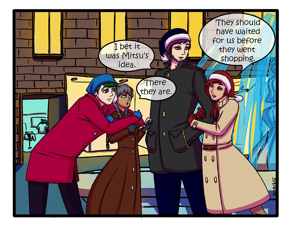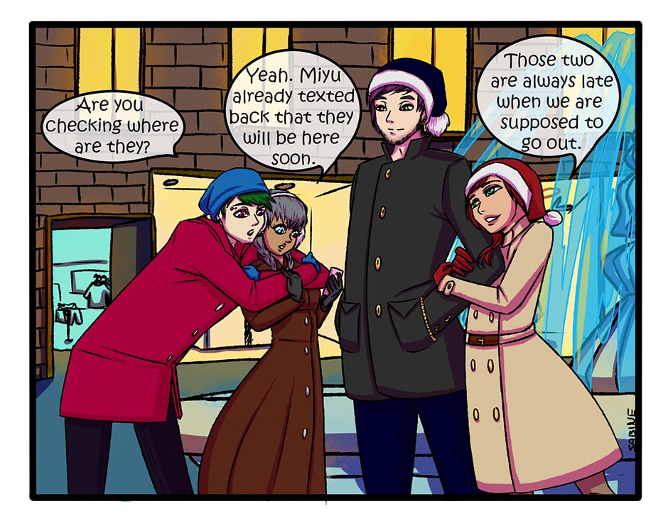 This comic will be featuring several character groups, but it will be in blocks until from each story all the characters would be revealed. Each of the groups will have their own color pallets for their backgrounds, so that it wouldn't be too confusing (hopefully).