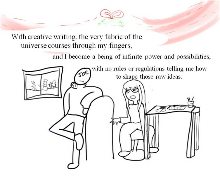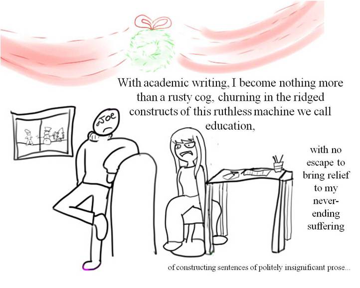 Surely I can't be the only writer who feels this way about academic writing? I hope not. Also, tis' the season, that's why there's colorful decorations! (I may have planned to release this around Christmas, but then I became distracted and procrastinated and... well, I thought keeping the wreath looked nice). Good luck to all those creative writers out there who have the same struggles! Good luck with next semester all students! :)