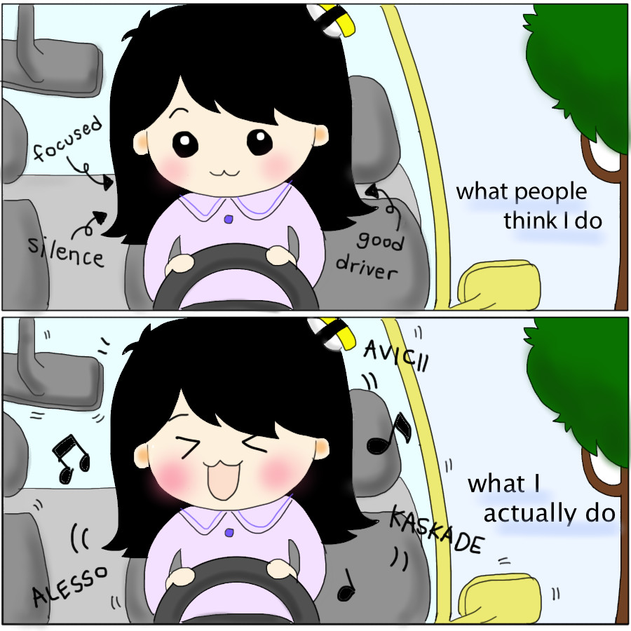 I'm in love with EDM (electronic dance music)! But hey! Just because I blast music in my car doesn't mean I am not a safe driver :)