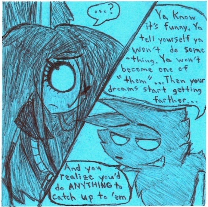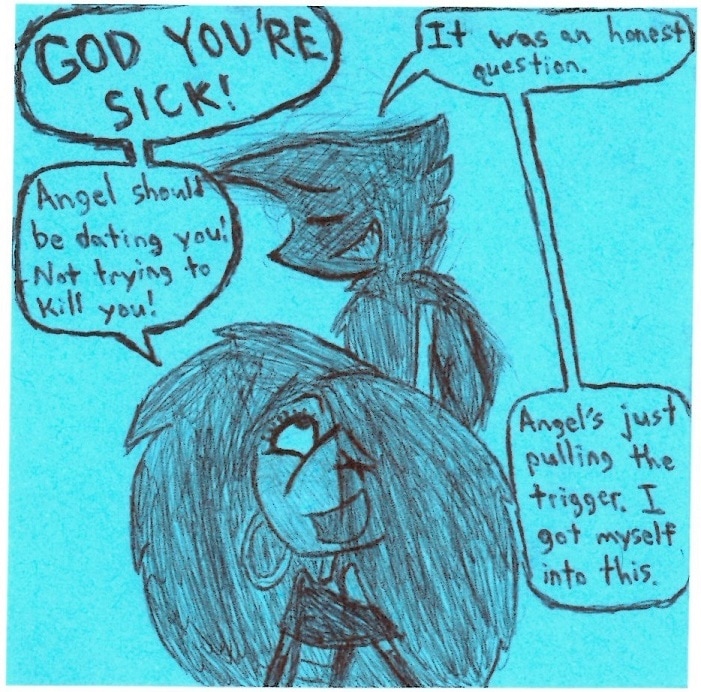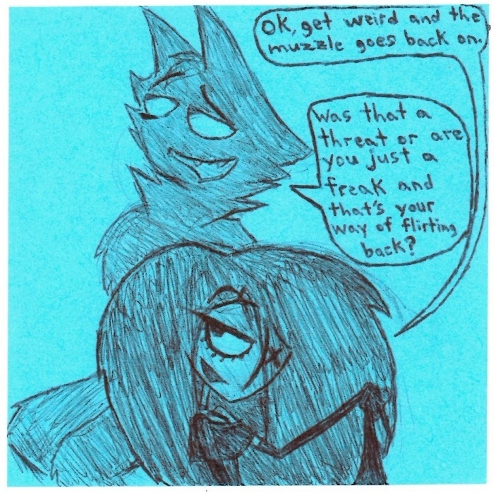 Still transferring stuff over. In hindsight this may have been the one definitive scene that spawned people shipping Vaggie with Baris. Whoops XD Vaggie belongs to Vivziepop! Please show her and her crew some support while they work on the legitimate Hazbin Hotel series!