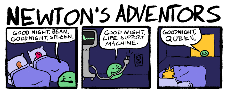 Newton tucks his pals into bed