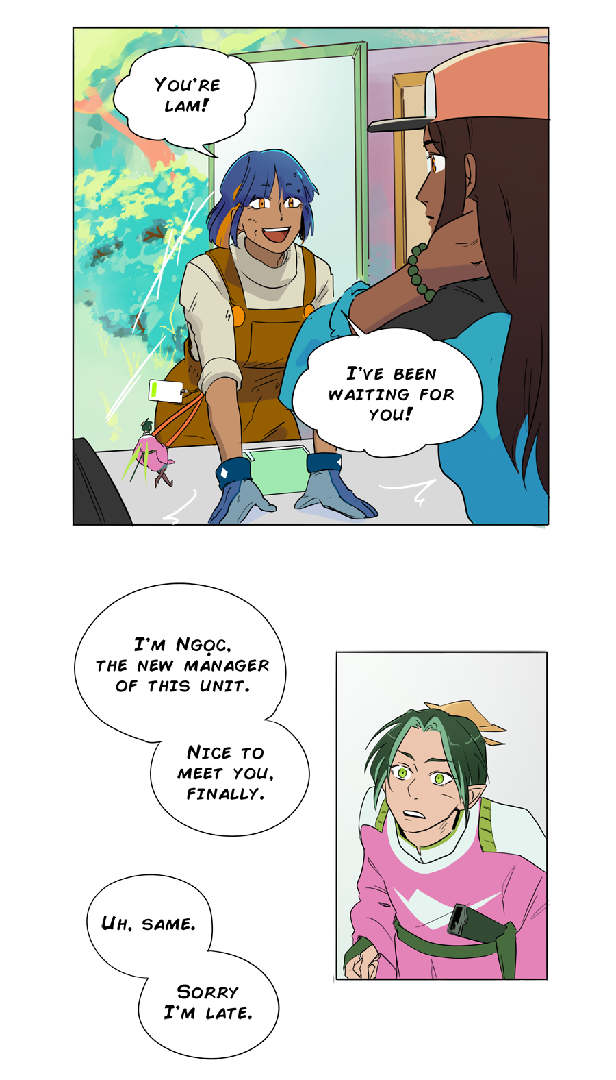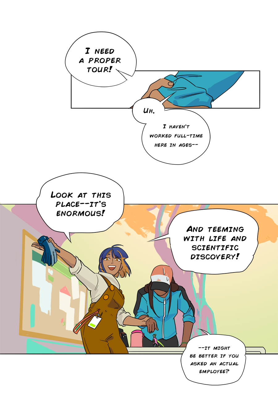 Wow those colors for the greenhouse though <3 I'm loving the brighter look overall? Feels fantastical while it's still sci-fi. (You're good at teasing character backstory too, ahh my fave thing, I can't wait to get to know all of them more, especially Lam)