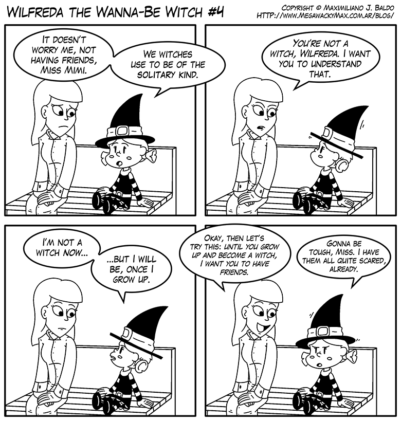 A new kid is around, and she claims to be a witch! Is she, though? She dresses the part and acts weird, but maybe there's more to Wilfreda than it seems... or maybe not.