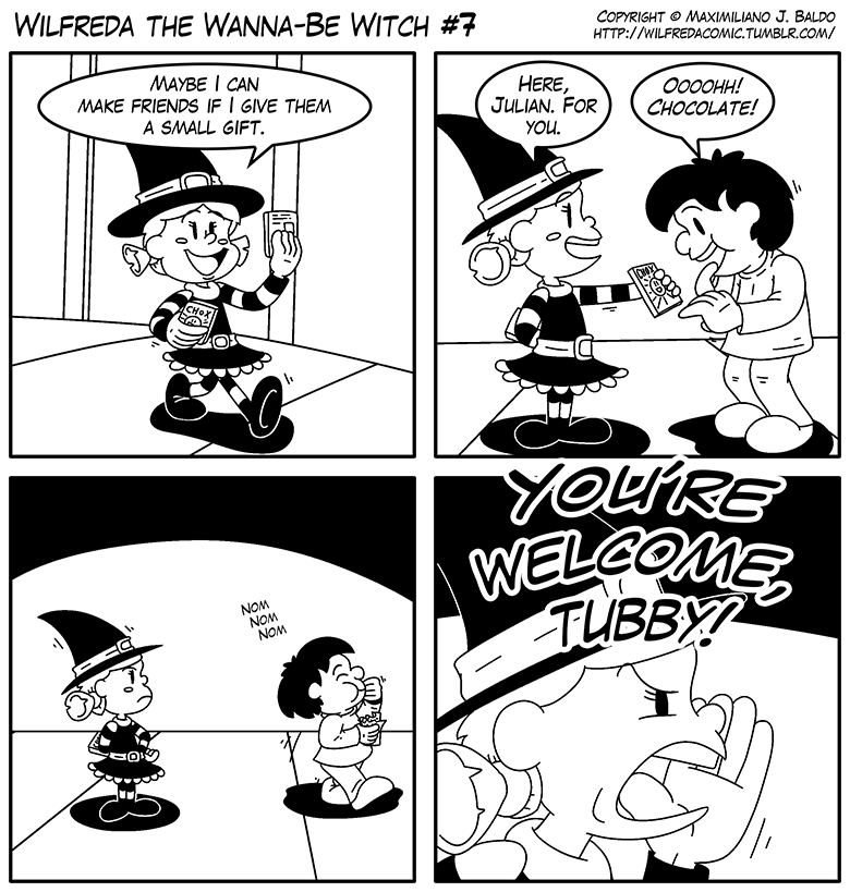 A new kid is around, and she claims to be a witch! Is she, though? She dresses the part and acts weird, but maybe there's more to Wilfreda than it seems... or maybe not.