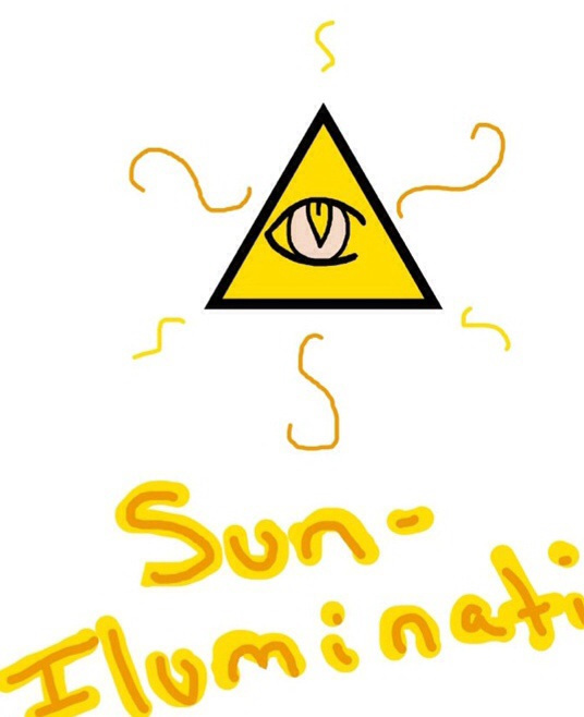 I always drew the sun with one eye and a triangle on his head because, (I always joke about the Iluminati) the sun is always over us and watching us (like the Iluminati). Plus the sun /illuminates/ the earth! Ooooooh! Scary! Iluminati confirmed!!!