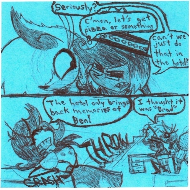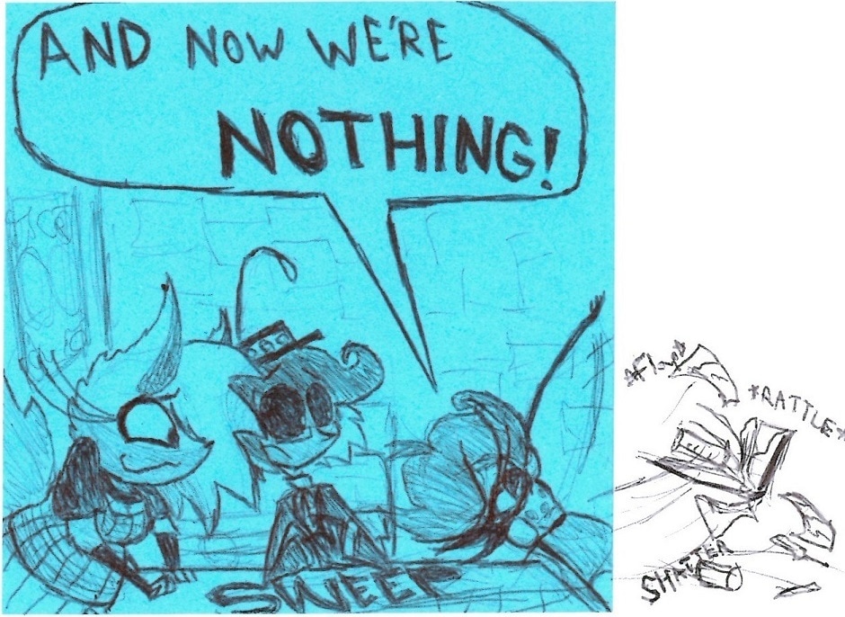 I think this is actually the comic where I finally settled on how Crymini was going to look in Forgery. She's MOSTLY Vivziepop's 2015 design, but I did make her face a bit fluffier and her nose a bit smaller to fit her current revamp.