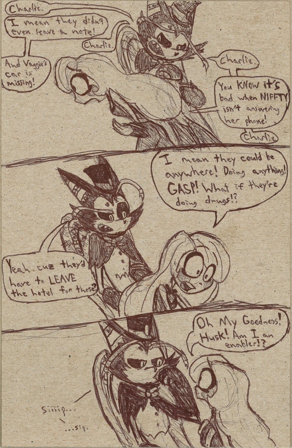 Meanwhile back at the hotel... Hazbin Hotel belongs to Vivziepop! Please support her and her crew while they work on the legitimate Hazbin Hotel series!