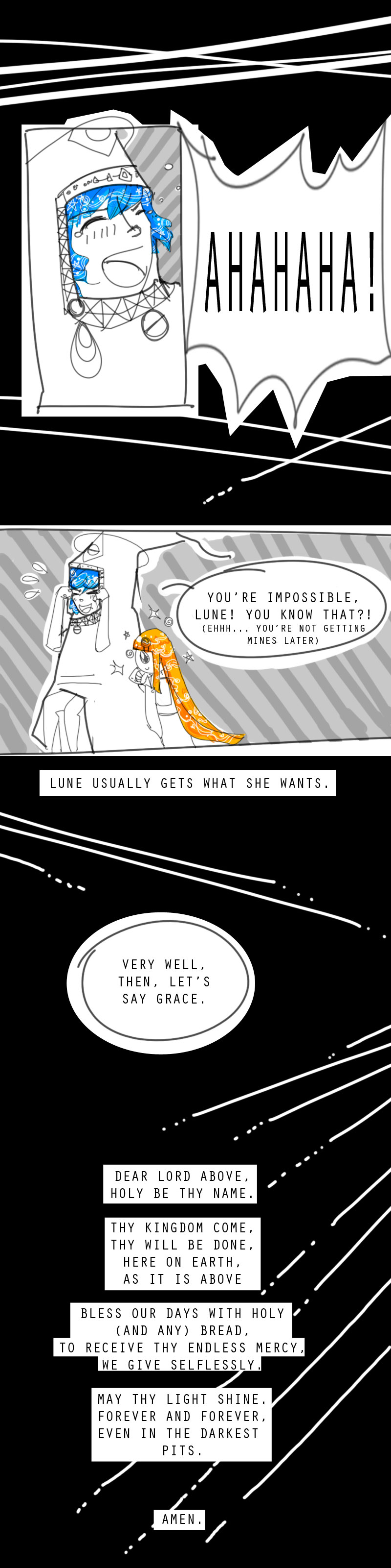 #grace #food #Desire #prayer #apocalyptic #yaoi #Fantasy #adventure #monsters #Darkness #hope #girl #magician #magic #bluehair #survival #wildeness #laughter #silence
