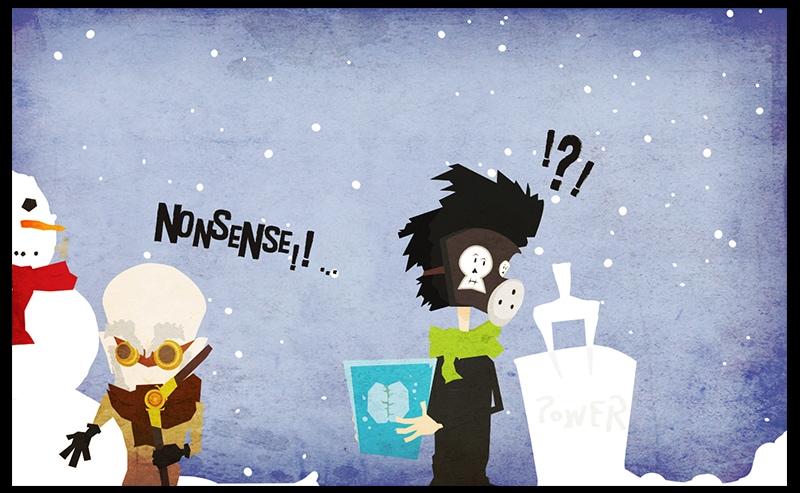 Professor and Jehosophat build a snowman.